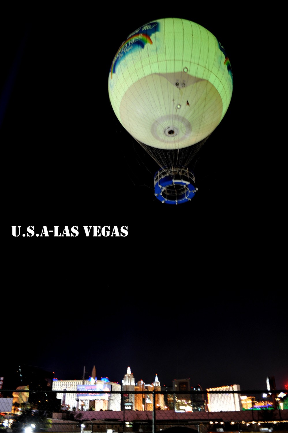 这个城市是在夜色中绚丽起来的,白天就归于平凡。每人花70美金,可以坐这个热气球升空看拉斯维加斯 的夜景。