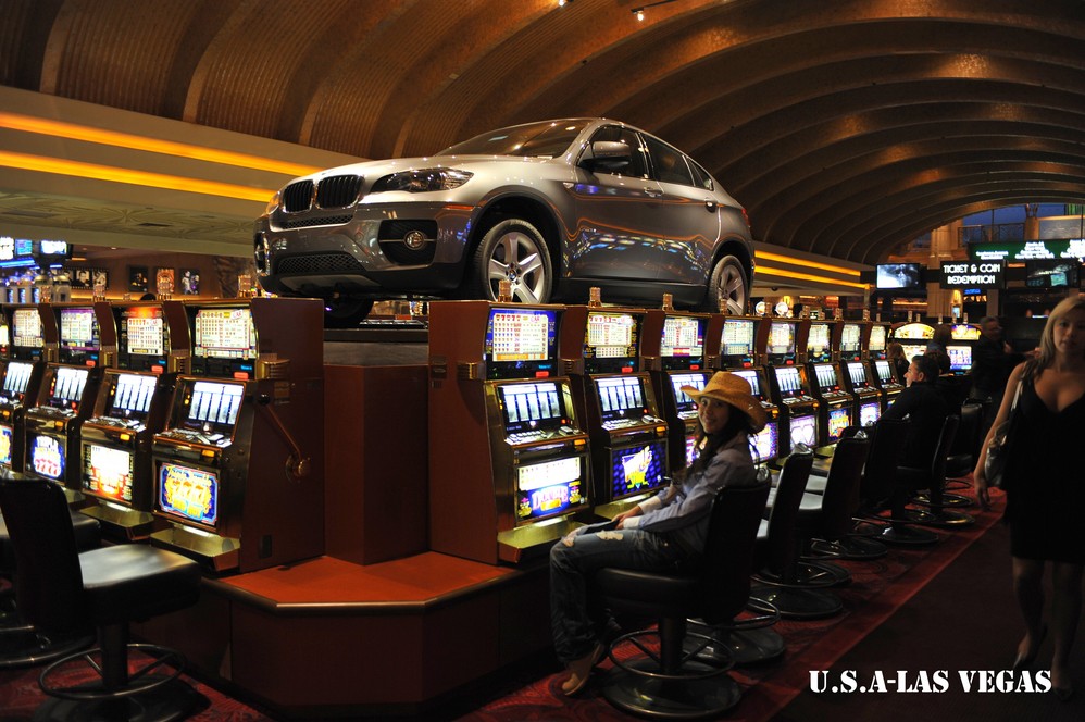 一圈老虎机的上面,停着一辆崭新的BMW X6,如果你赢了,这辆车就归你了。说真话,我在照相的同时都在幻想如果我获奖的样子。