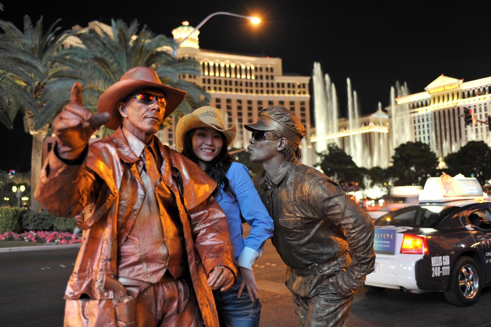 MGM里的赌场,人声鼎沸,光怪陆离。很多人抱着发财梦来,很多人散尽家财而去。不过这种气氛真的很刺激人,我们也跃跃欲试。手气最好的两次,在轮盘赌我用20美金赢了将近100美金,连赌场的工作人员都叫我Lucky Guy,不过很快就又输掉了。