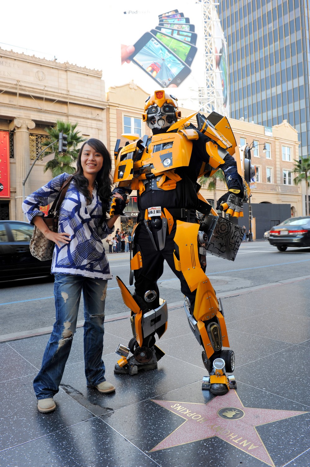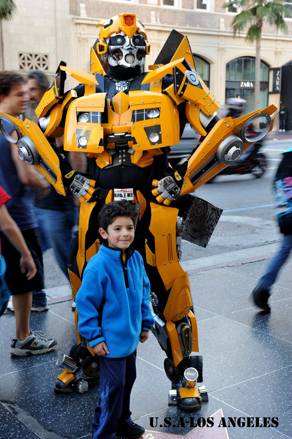 大黄蜂在这个小朋友面前表现出了所谓的英雄气概,不过我还有一张大黄蜂趁人不备低头点钱的照片,哈哈.正面形象永远正面出场!