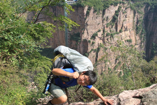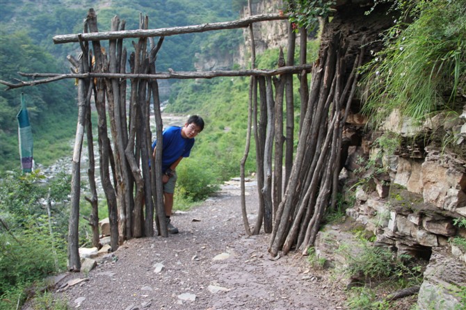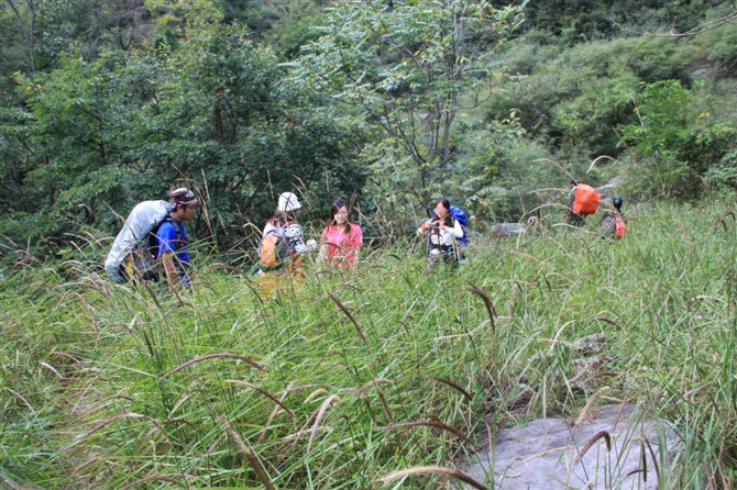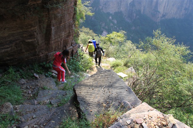 简单吃饭后,向七星潭进发,轻装。由于天气原因不能走一线天,上周郑州一群驴友上去后下不来,是村民用绳子把他们吊下来的。