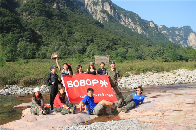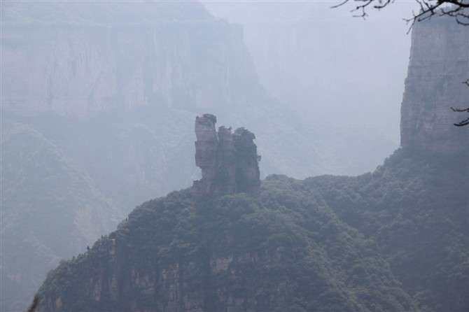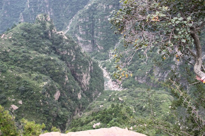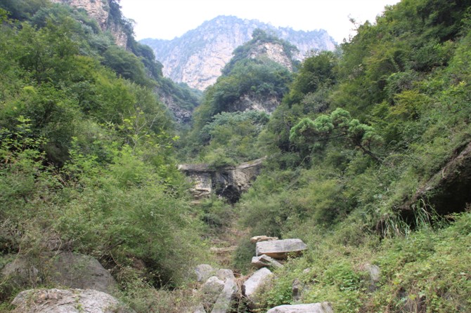 饭后登九莲天梯,到抱犊进口。在进口处,碰见了永城的驴友,热情了打了招呼,并伴随出发,一路上前前后后的撞见了好几次。9点开始穿越,下午3点到抱犊寨,时间6个小时。