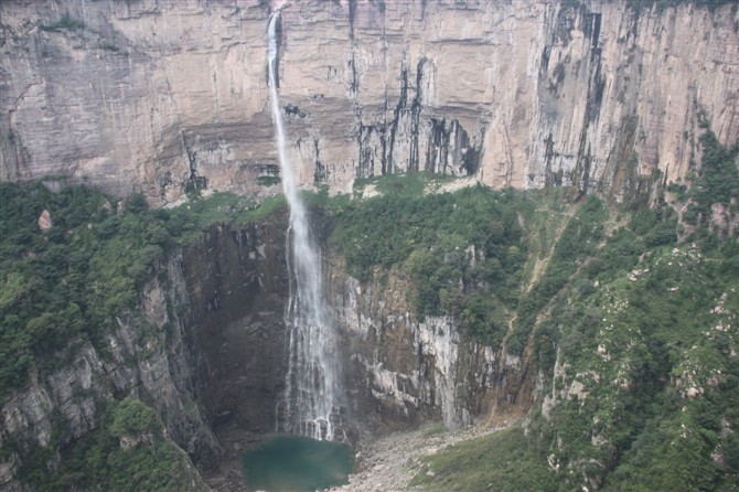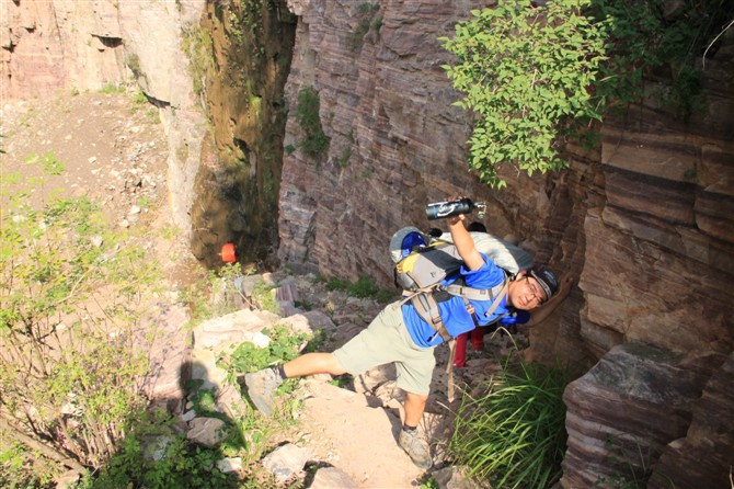 8点出发,下抱犊天梯到抱犊瀑布(我自己起的)穿凤凰大峡谷抵达抱犊河(八里沟景区内)。历时6个小时。这条路,雨雪天气一定不要走。