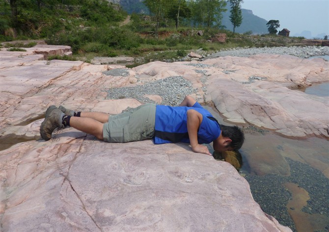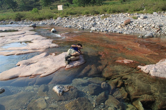 走回龙口处,小息片刻,坐在石头上享受一下清晨的阳光,依山傍水。让晨光放肆的盖到身上,漫步在阳光里,漫步在清涧中。。。。