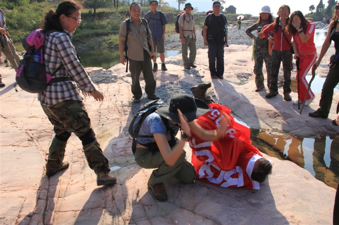 群主说要为群鞠躬尽瘁,这一行为感动了路过的驴友。他们给群主严肃的鞠躬并号啕大哭。