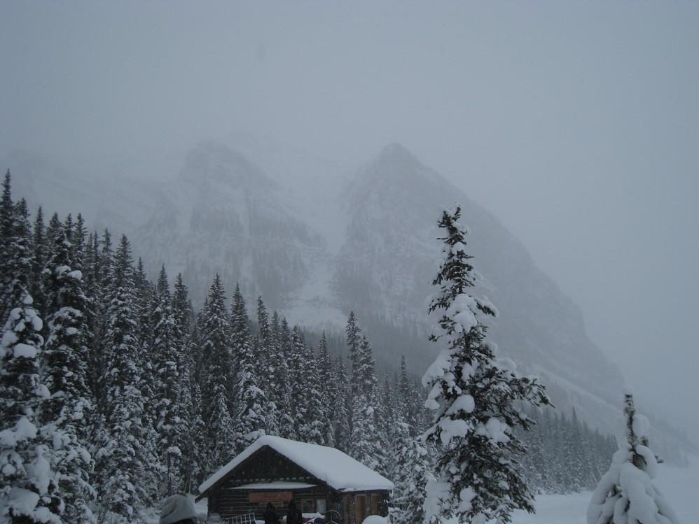 露易丝湖周围都被冰雪覆盖 从小到大第一次见这么大的雪。。