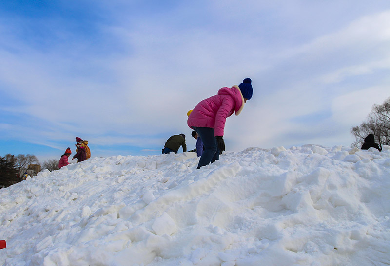 (1)在北京,熊孩子终于实现了她玩雪的愿望;