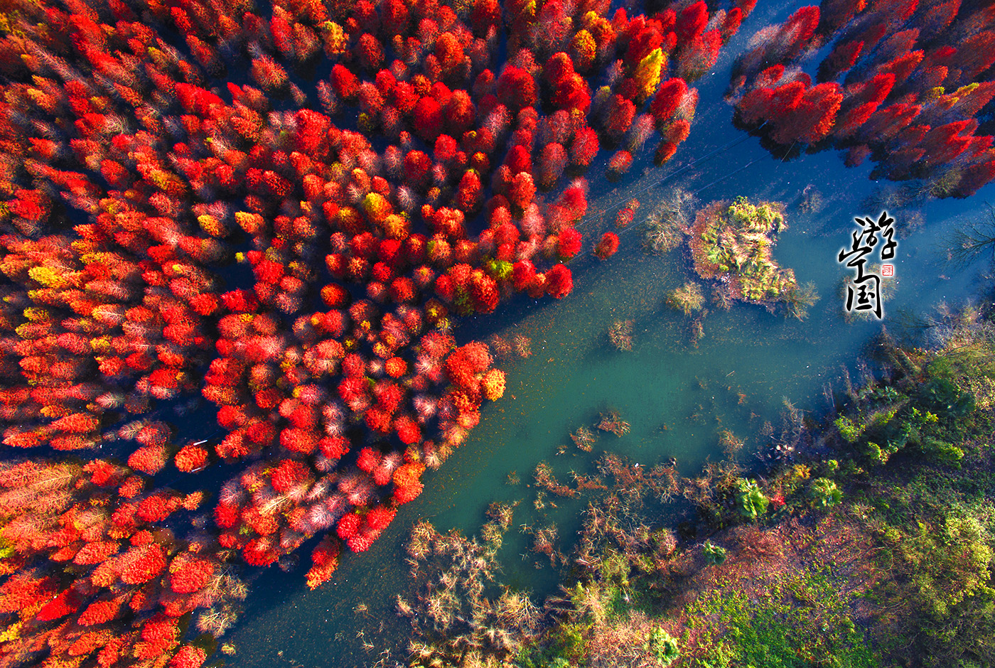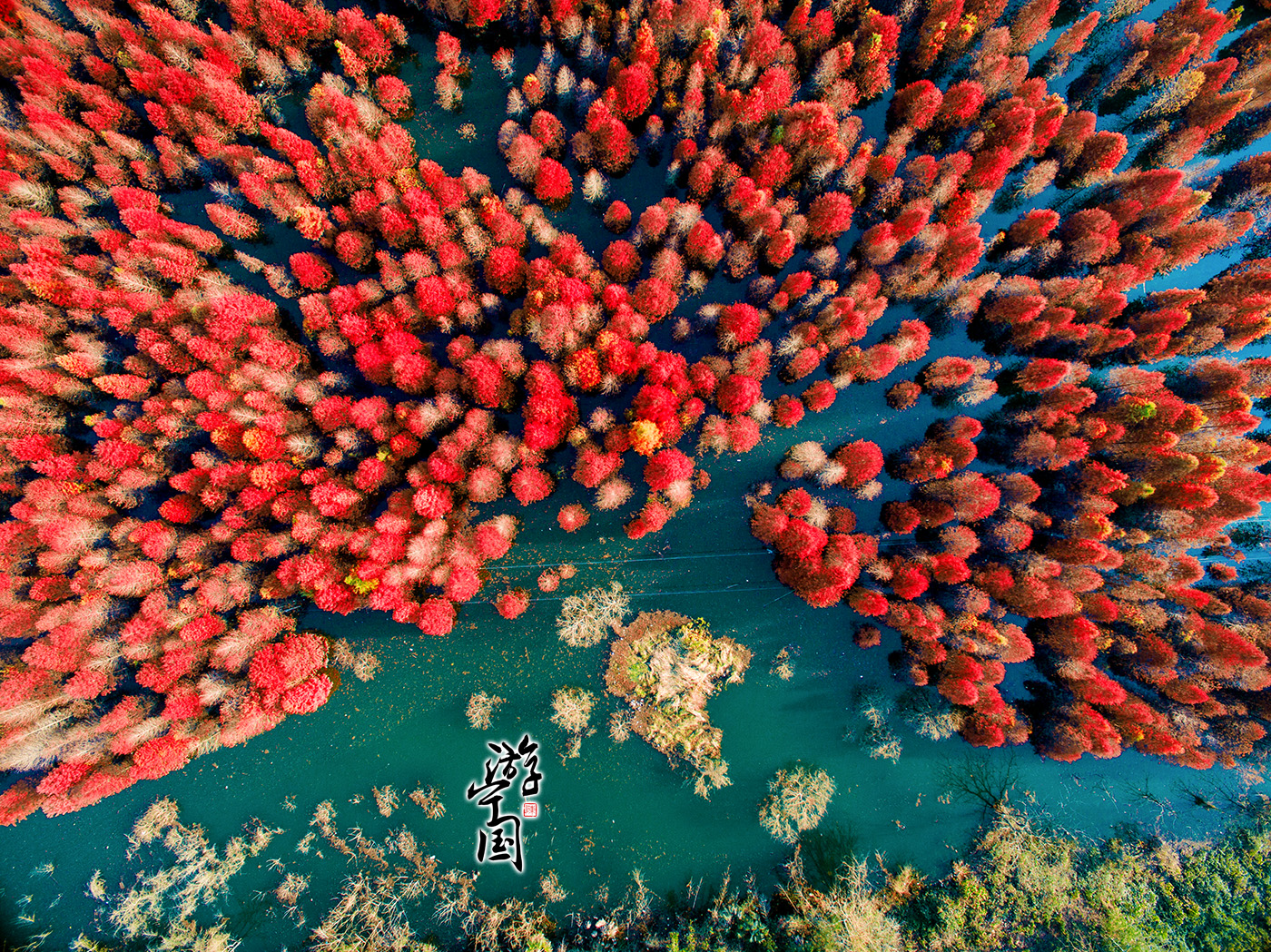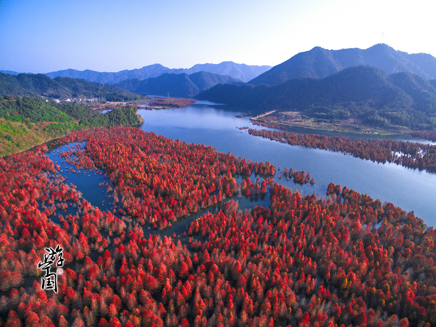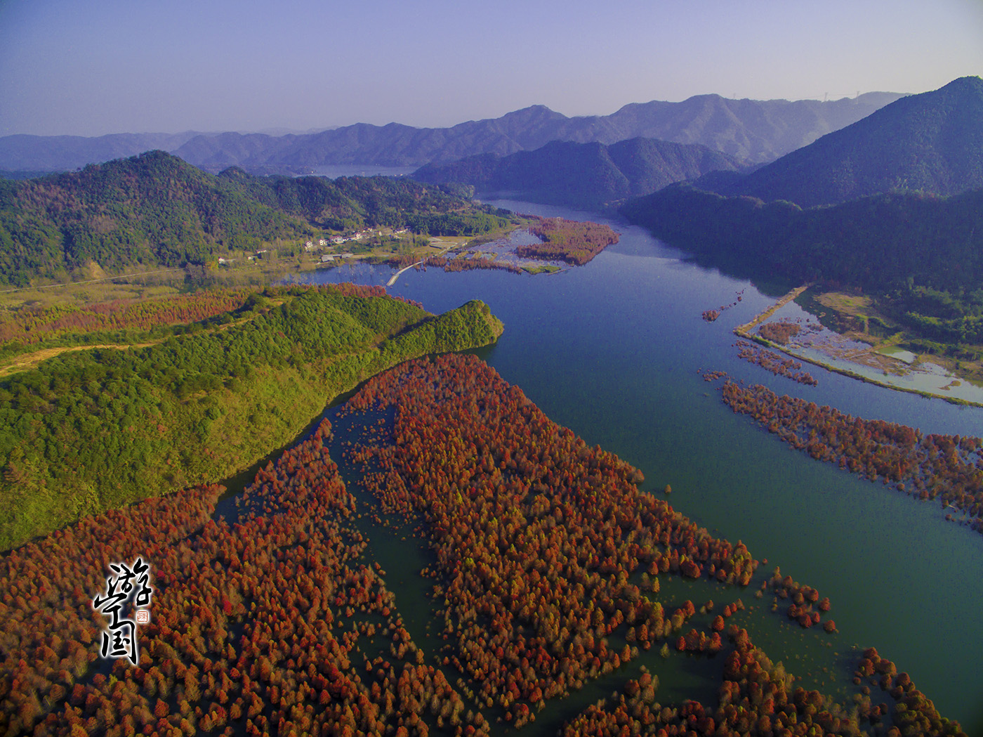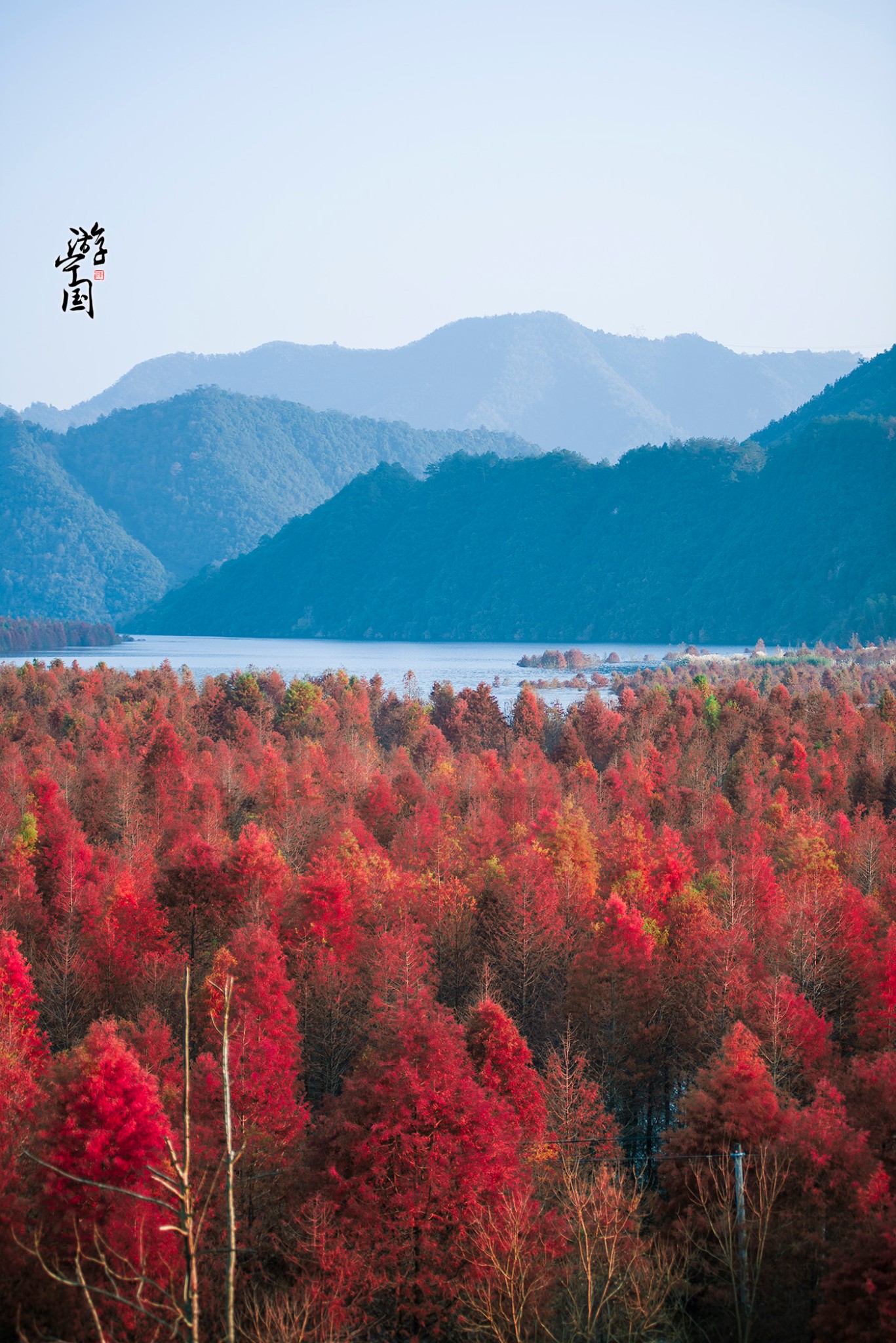 每当初冬时节,青龙湖内的红杉林、整树披着夺目的红妆,叶片呈红、绿、黄等五彩缤纷之色……层林尽染、美不胜收。拿上无人机升空后鸟瞰青龙湖全景,真是“青山隐隐水迢迢,红杉层层色俏俏”!(哈哈,我瞎改编的诗句,见笑见笑!)