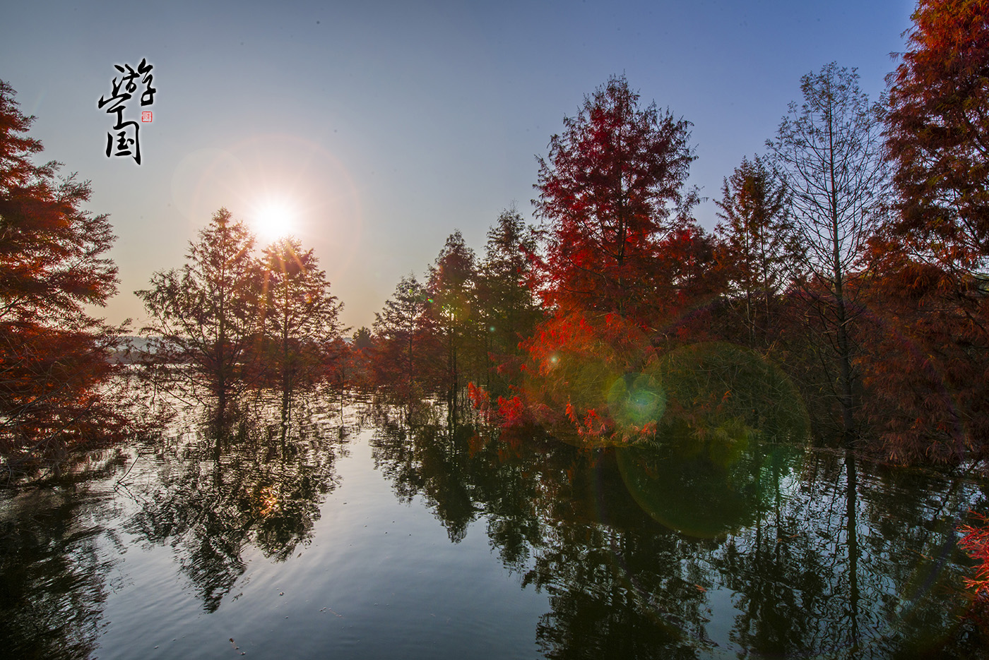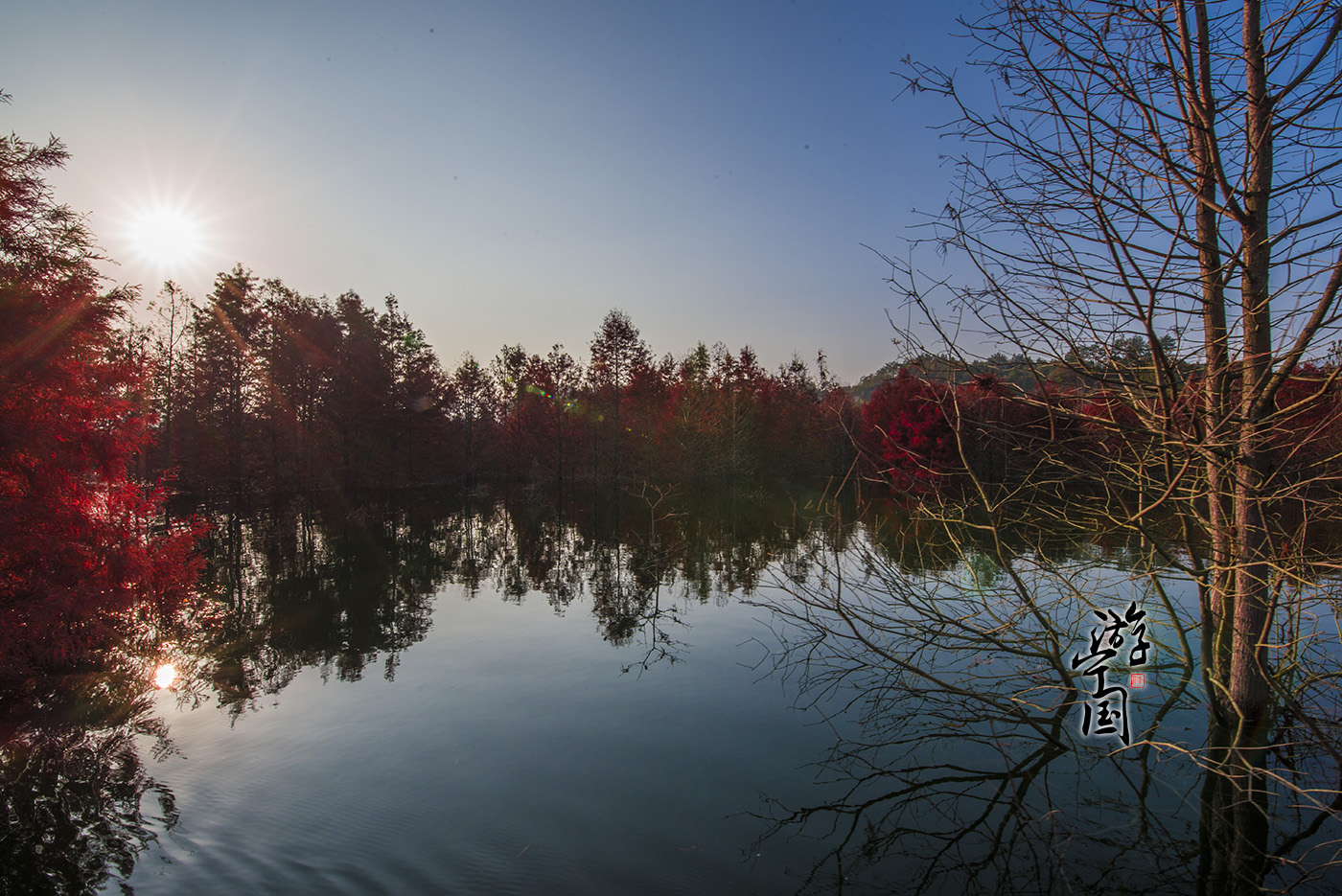 夕阳西下,红杉林及其倒影煞是别致有韵味,让此处的深秋更增添了一份妩媚与成熟,令人陶醉!