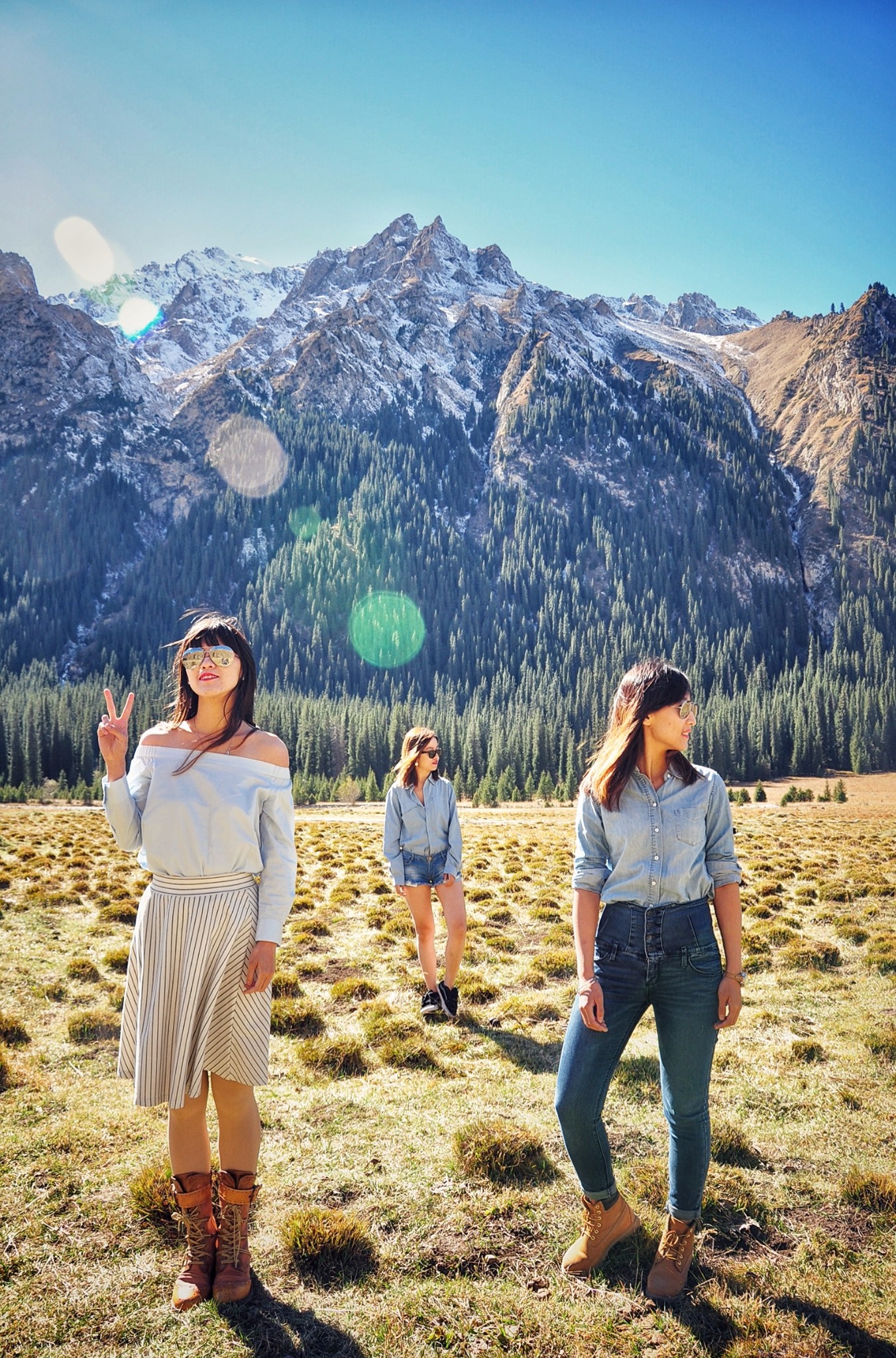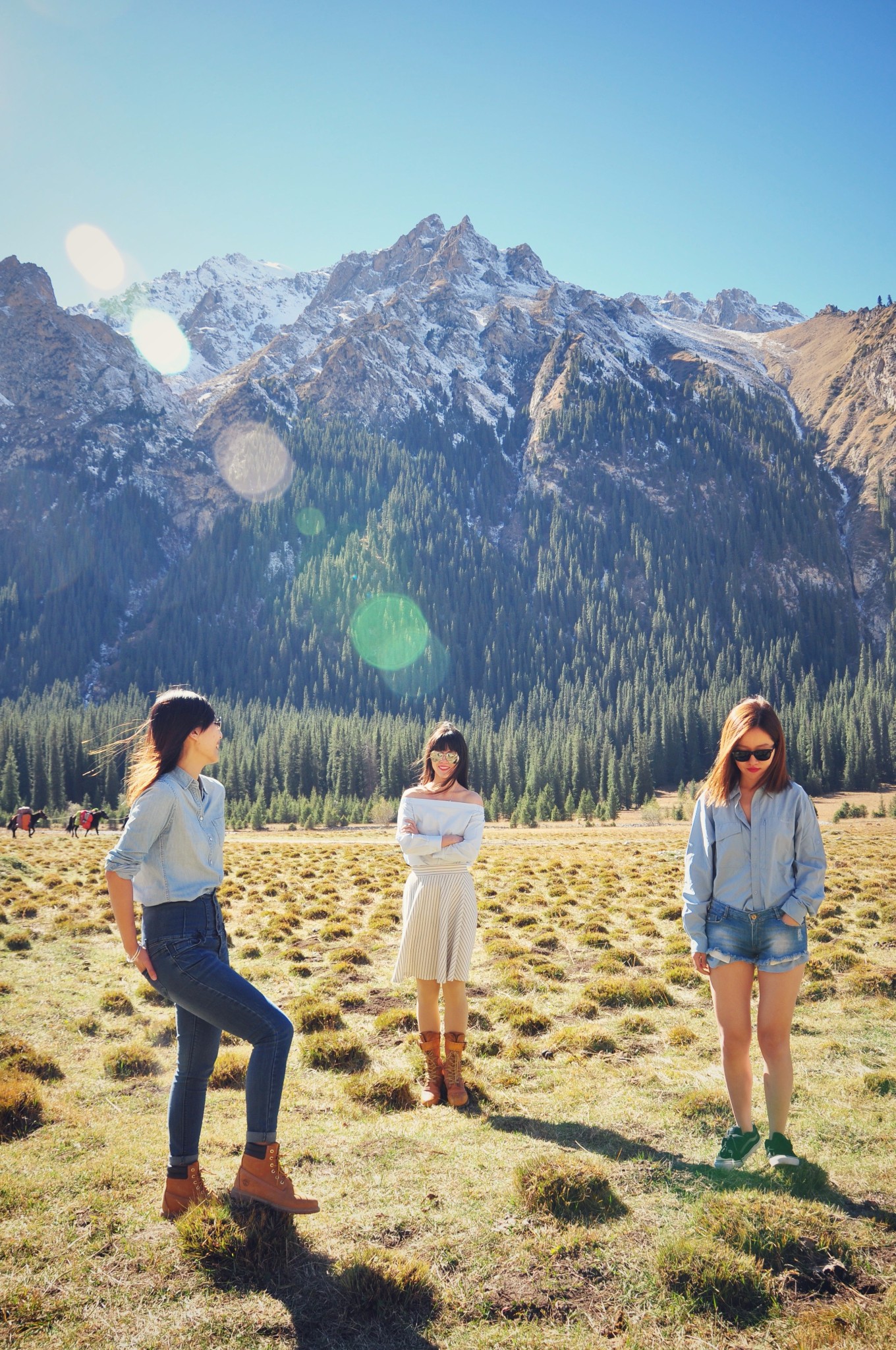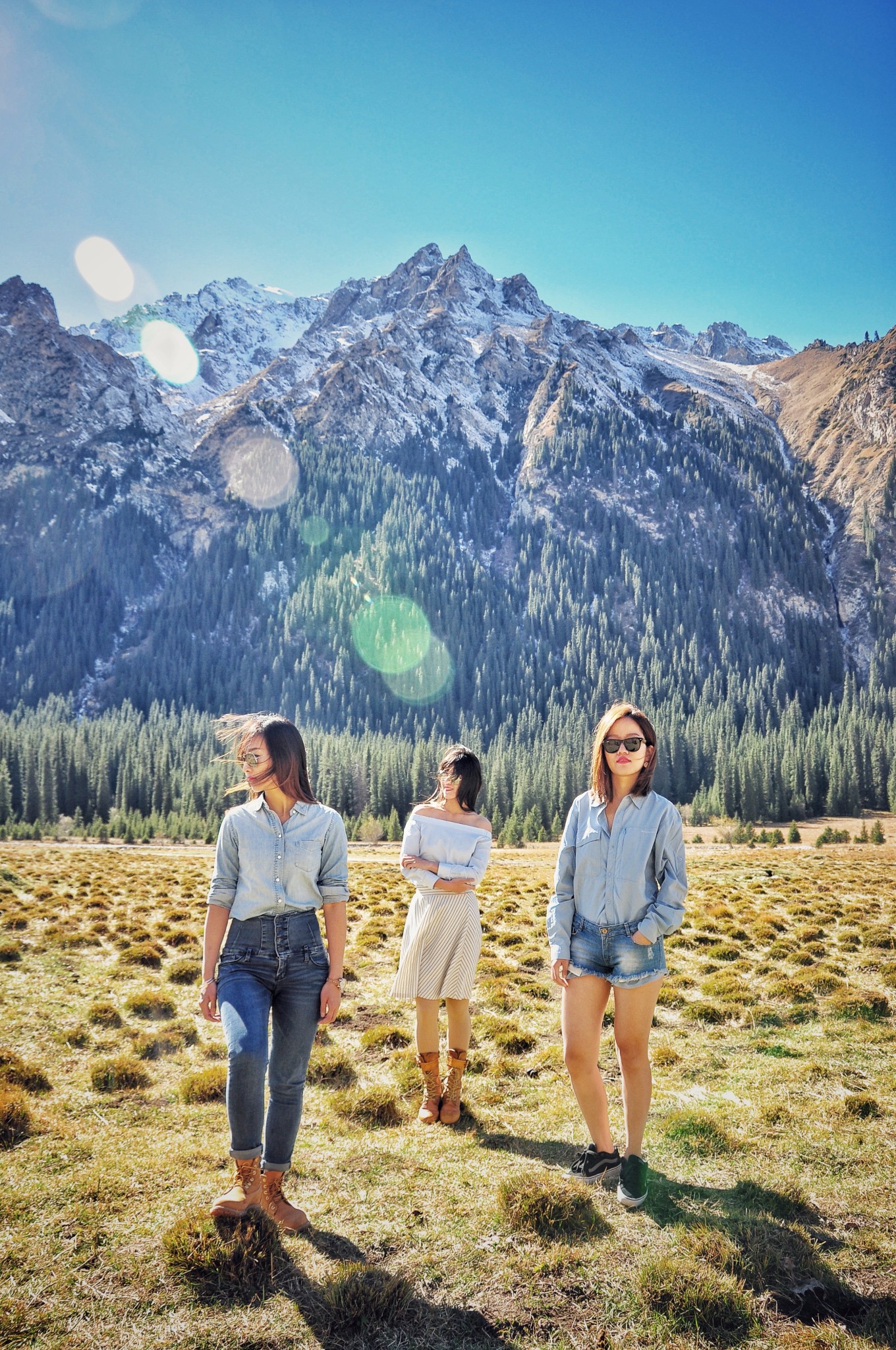 虽然表情、动作都很自然,但其实此时的温度不足10度。其他两个小伙伴都光着大腿,为了拍照,我们也都是拼了。