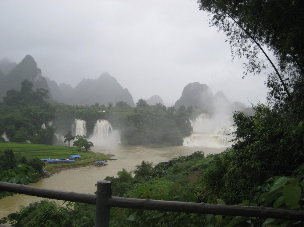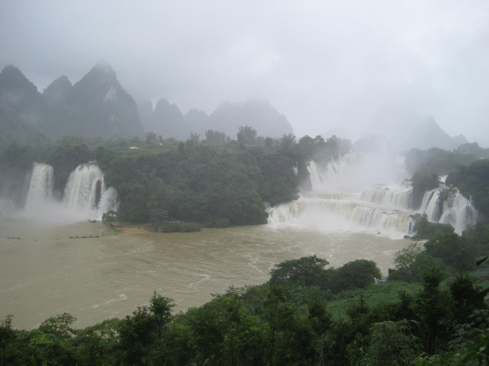 瀑布宽120多米,高70多米,三级跌落,气势磅礴,终年水量充沛,四季飞瀑,姿态各异,与紧邻的越南板约瀑布相连,宽200多米,是亚洲第一大跨国瀑布,堪称中国最美的瀑布。