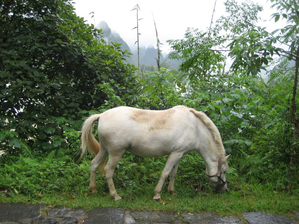这可能是只被放生的马儿吧。因为更远处就能看到很多被装饰得漂漂亮亮的,由主人牵着供游客拍照用的,10元/次。