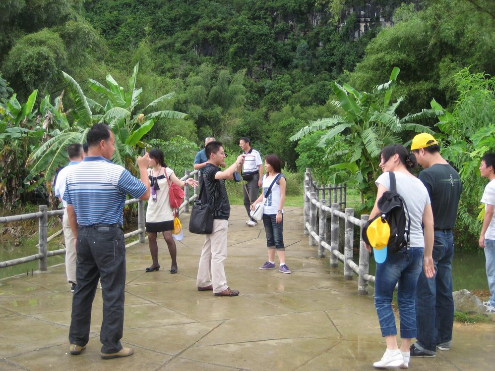 啊,这名青衣男导游好年轻,还不到20呢,