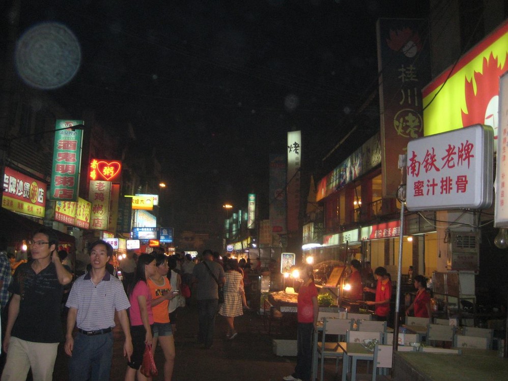 晚上自由活动,听说小吃一条街很热闹,就赶去吃晚饭了。黄昏时分,正是下班高峰期,连的士都打不到。哎,只好赶公交了,看好了牌,一上去就站了11站的车程,那个拥挤啊,汗~ 出门在外,没辙啊,