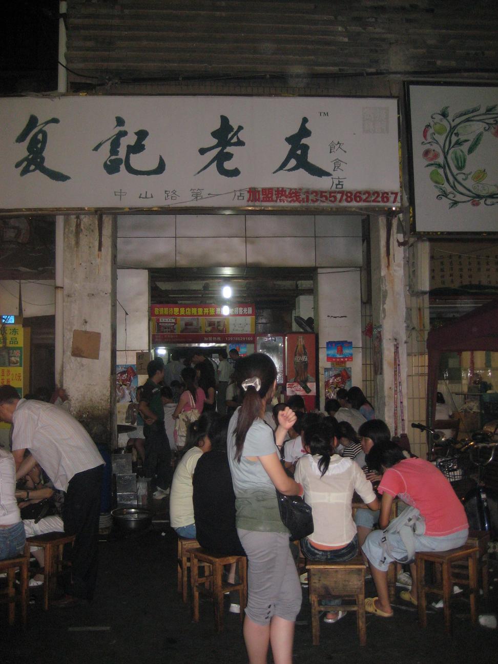 啊,,这家复记老友店啊,人超多,门面不怎地,但既然到小吃街,肯定要挑人气最旺的店才可以吃出当地风味啦。我们等了好久,部分人争着位置,部分人到里面自己捧面,还有啊,那里面烧面的女伙计可凶了,问她一句话回答绝对要吓到你。