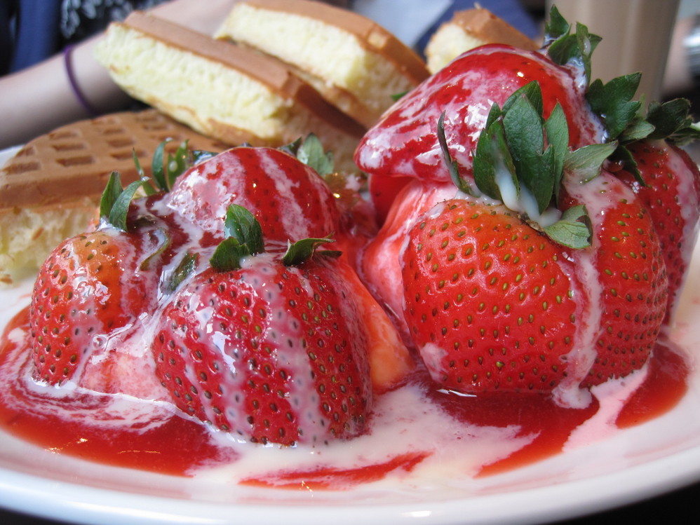 新鲜草莓、草莓冰淇淋、卡司达酱、草莓果酱混搭