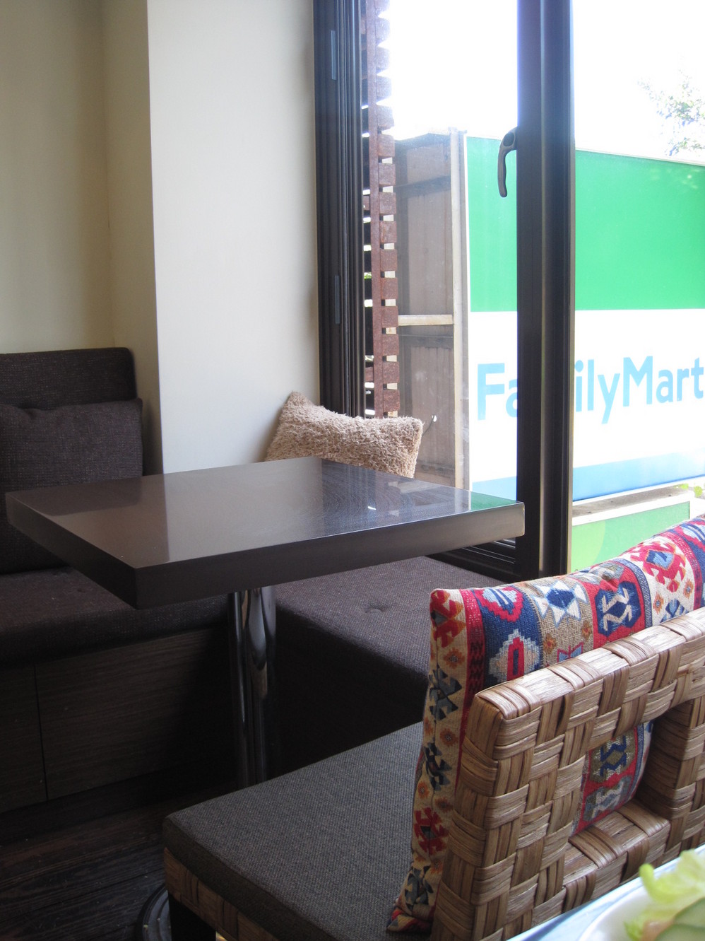 是很舒服的空间,有大片明亮的落地窗,还有舒服的抱枕