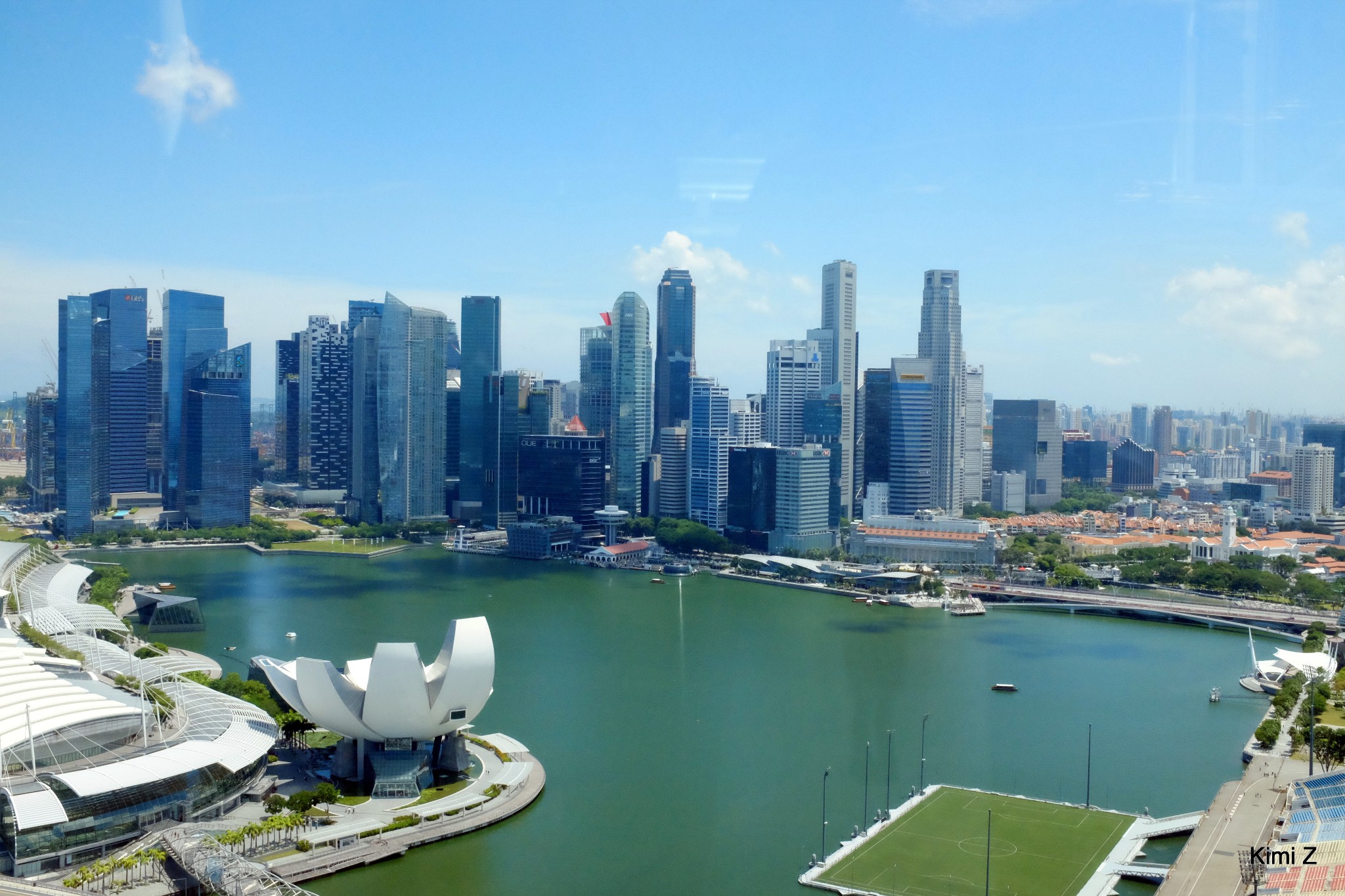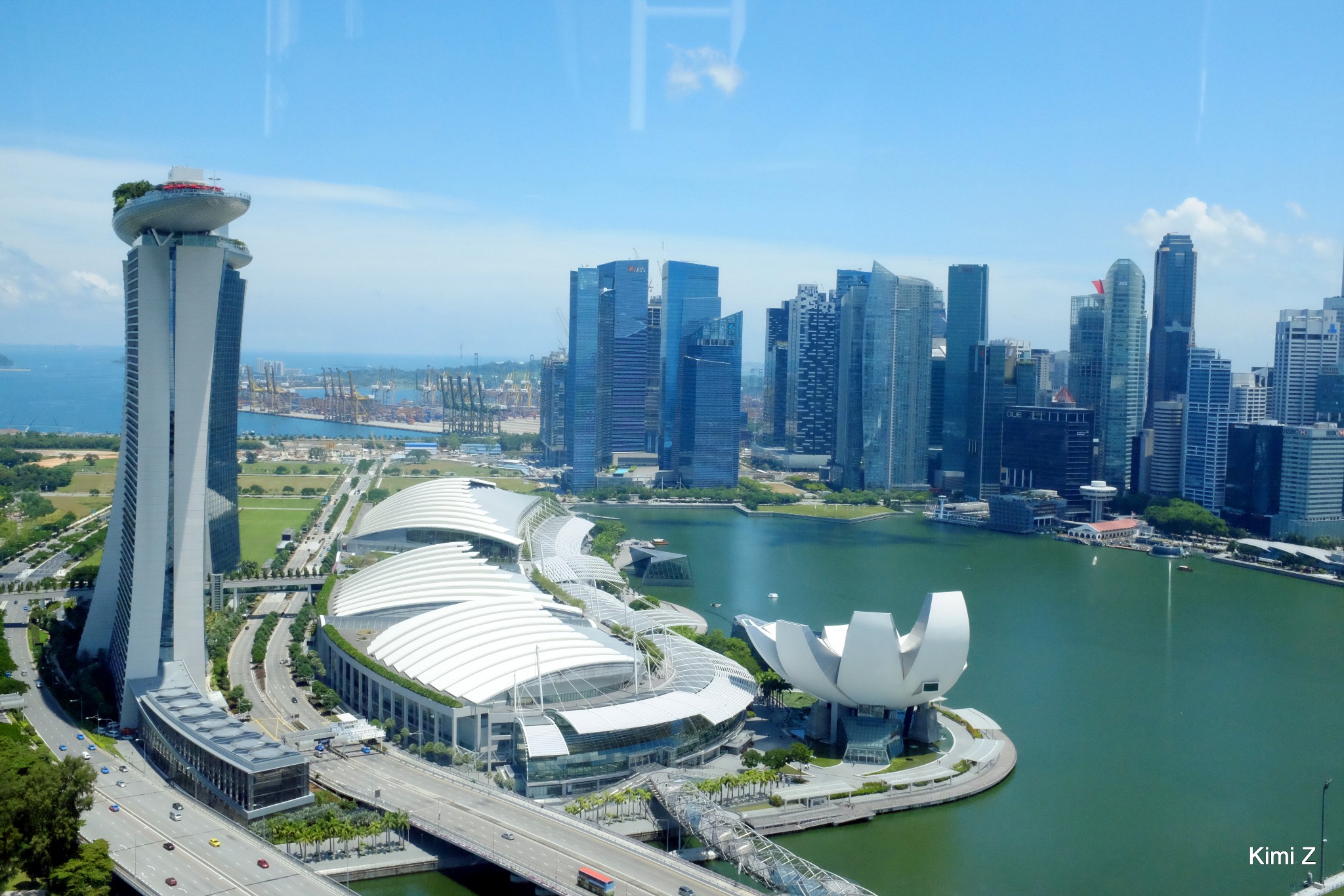 在淘宝买了中午1点的新加坡摩天轮(Singapore Flyer)门票,离MARINA SQUARE不远,午餐完步行前往。傍晚时分上摩天轮当然能看到最美的黄昏,因为还计划上金沙酒店空中花园观景台,所以用摩天轮看看白天的新加坡,在金沙看黄昏。如果摩天轮和观景平台都去,个人认为这样安排较舒适,因为黄昏时上摩天轮的人太多,一个舱室安排20人,尽管有空调,但是密闭的环境里汗臭、体臭......能想象吧。金沙天空公园(Sands Sky Park)是露天观景台,在金沙酒店顶层船头状的半圆,与无边泳池同一层,尽管没法拍个无边泳池装B照,观赏到的风景几乎一样。