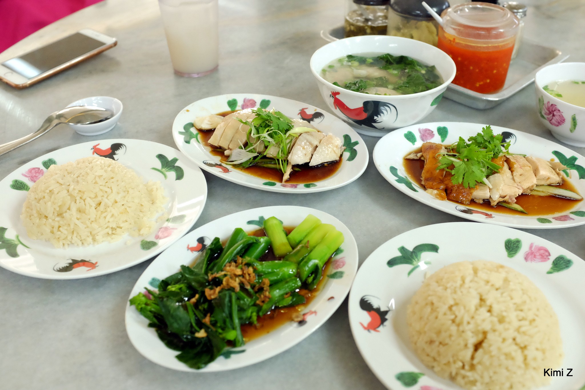 因为在鱼尾狮和摩天轮一带游玩,所以在大众点评上搜了附件这家口碑较好的餐厅,也是我们新加坡旅程的第一餐,还蛮期待的,结果中规中矩,不推荐。我们两个人点了两份套餐,一份要白鸡+青菜,另一份要烧鸡+水饺,这样比点鸡再另外加青菜要便宜得多,而且也可以试到更多的品种。