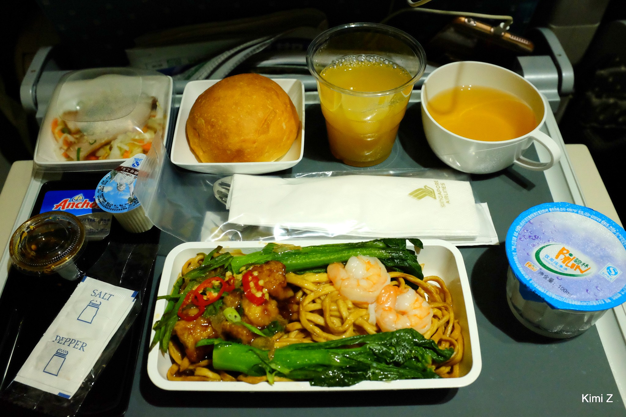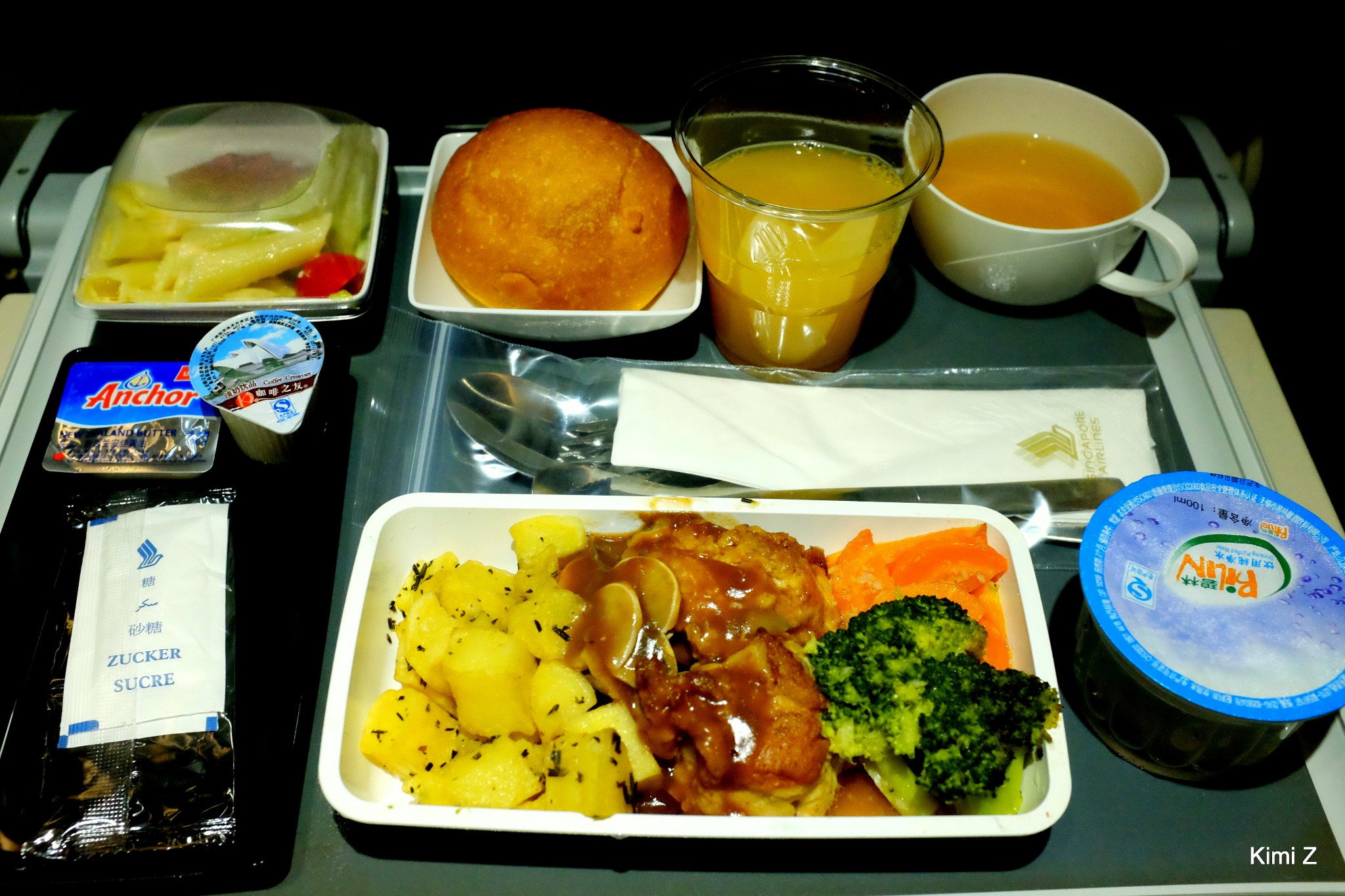 最后选择了SQ853搭配SQ852航班,因为这样早机去、晚机返,最大限度地利用了在新加坡游玩的时间,不过要能忍受红眼航班的疲劳。新加坡航空作为全球十大最佳航空公司,一直被誉为最舒适和最安全的航空公司之一,飞机的平均机龄为6.6年。这次选乘的SQ853虽然是红眼航班,但空乘人员非常热情有礼,上机后会提供热毛巾,无论是服务还是餐食都很不错,去程航班提供夜宵,夜宵有国际餐点和东方餐点两种选择。