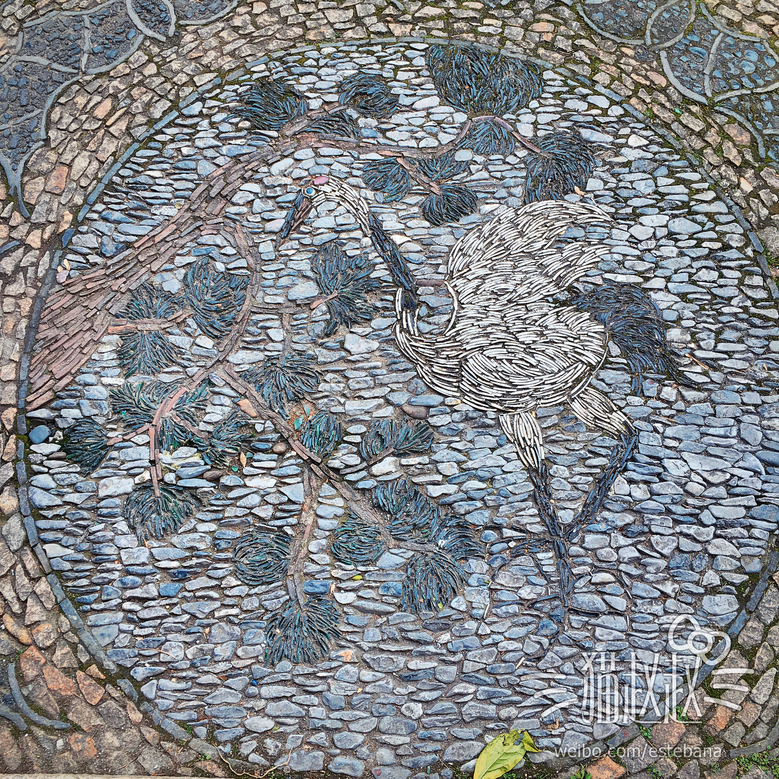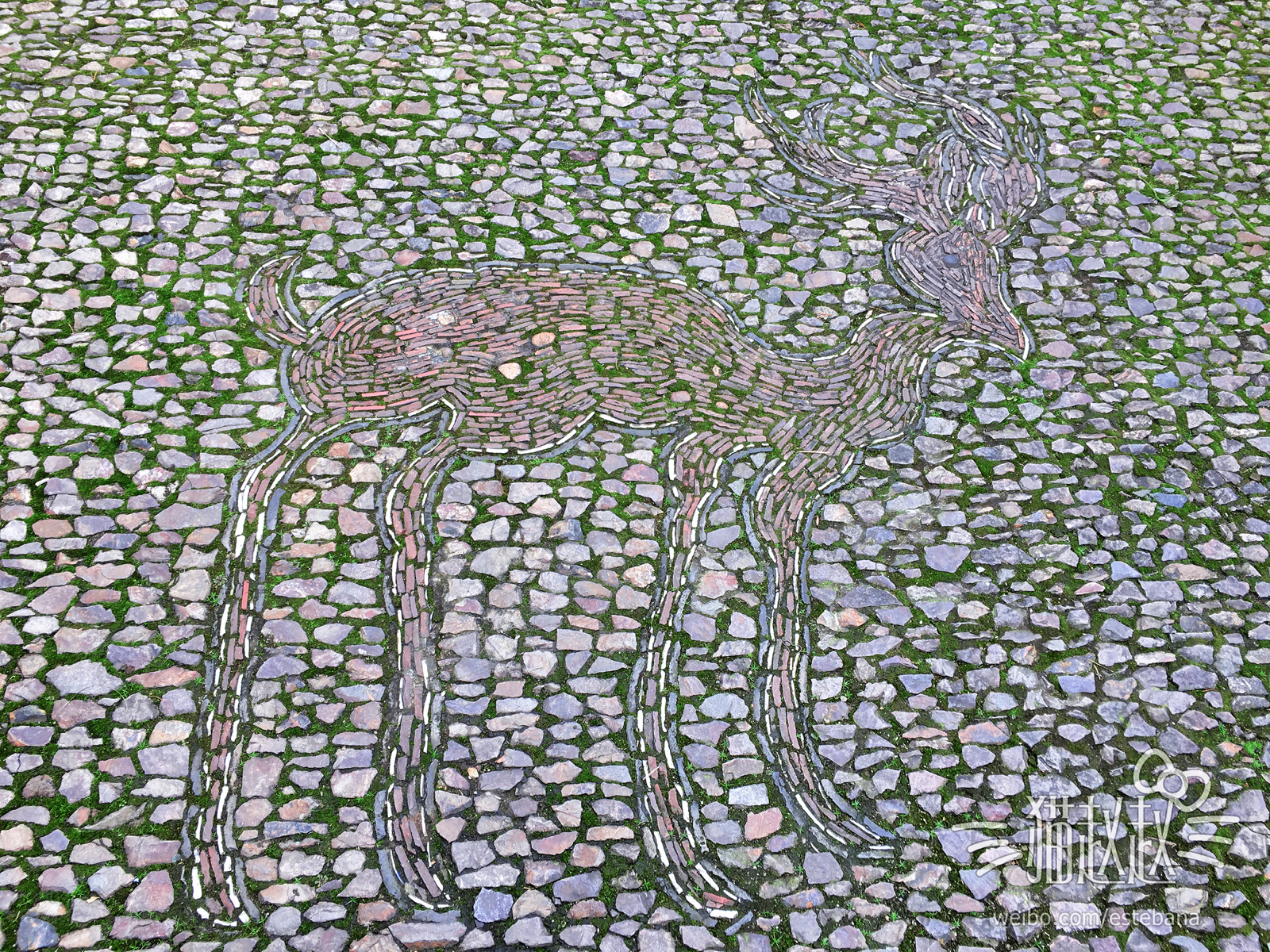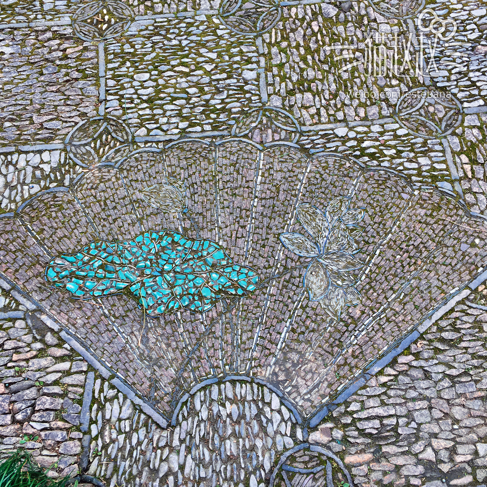 这些个石子在地面铺绘的图案,看着挺分明,拍了回来再看,居然有一种体检时测色盲的错觉。