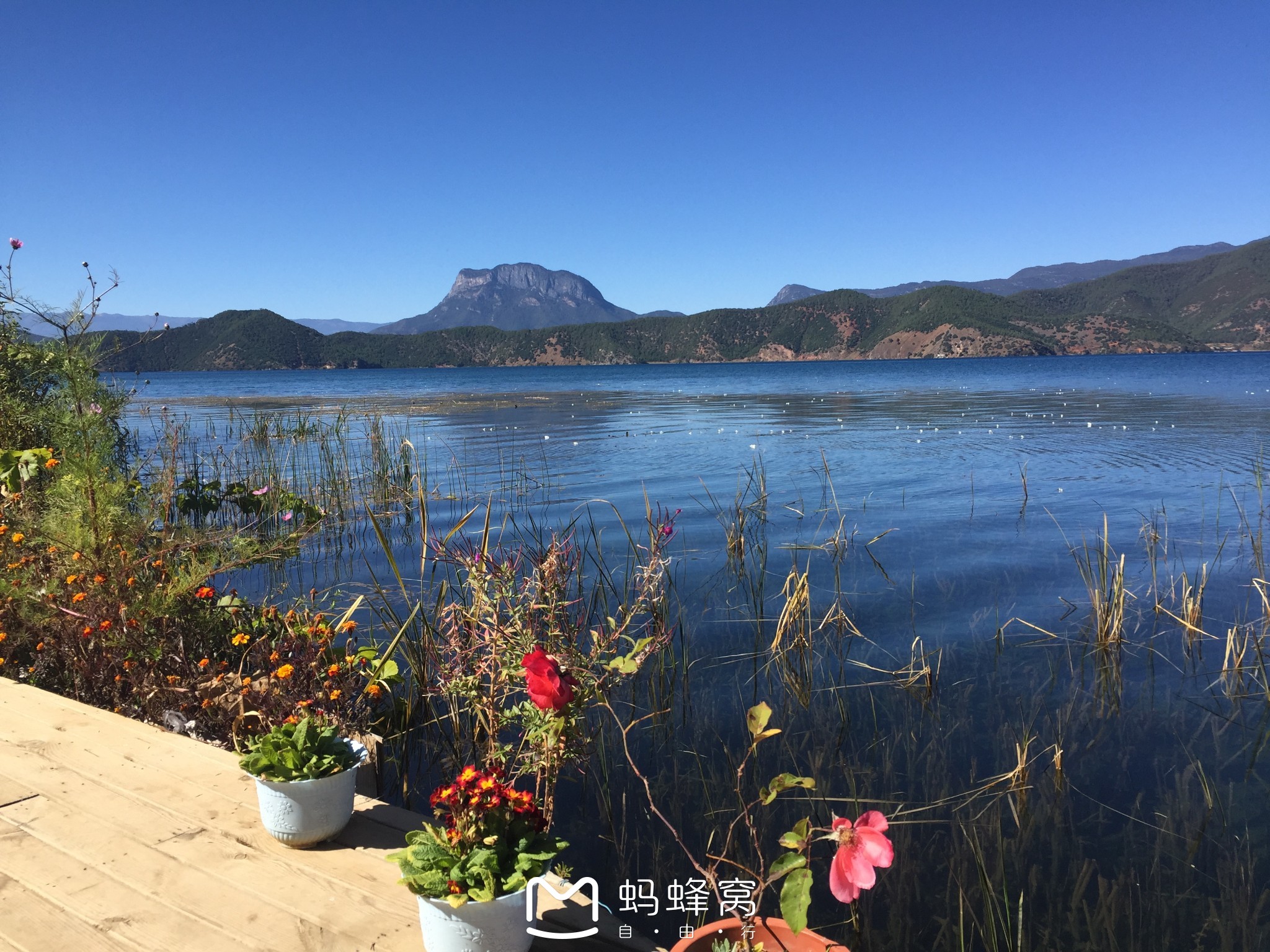 泸沽湖是处于云南和四川交界处,环湖一周你可以穿过四川的边界,大约有60多公里,骑电动车大约要2个小时,有很多的村落,可以边走边停边拍照,野花在阳光肆意尽情生长,无论在地上或水里。