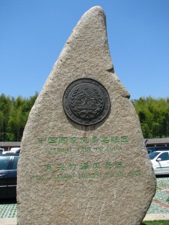 一路颠簸,也没有什么美景,半梦半醒间我们就到站了。下了车,一块石碑赫然在目 ---中国国家风景名胜区宜兴竹海风景区。
