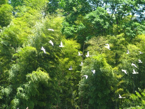 从景区大门进去到镜湖游览区之间还有一段距离,你可以乘景区的电瓶车,也可以自己走。我们是来欣赏美景的,当然是步行了。一路前行,环顾两侧的山峰,满目都是挺拔的竹子,难怪乎称之为竹海。当然在春天大自然复苏的时候,不仅竹子,万物都生机勃勃,招蜂引蝶。