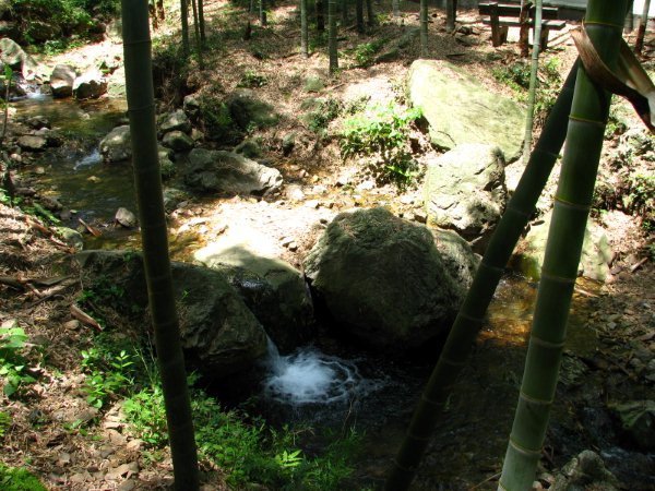 接下来到上山之前的这段行程,又有两个好朋友(竹林和小溪)与我们一路同行,风吹竹林的沙沙声和溪水流淌的汩汩声,谱写了大自然最和谐悦耳的音乐,生命在这里得到了意义。看到太湖第一源的第一眼,让我怎么也无法想象如此潺潺的小溪流是如何汇成浩瀚的太湖的。