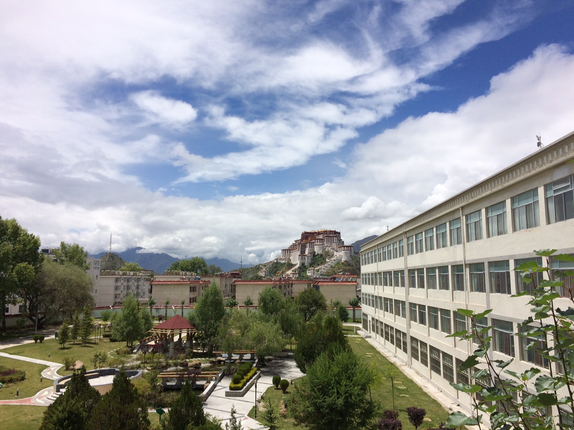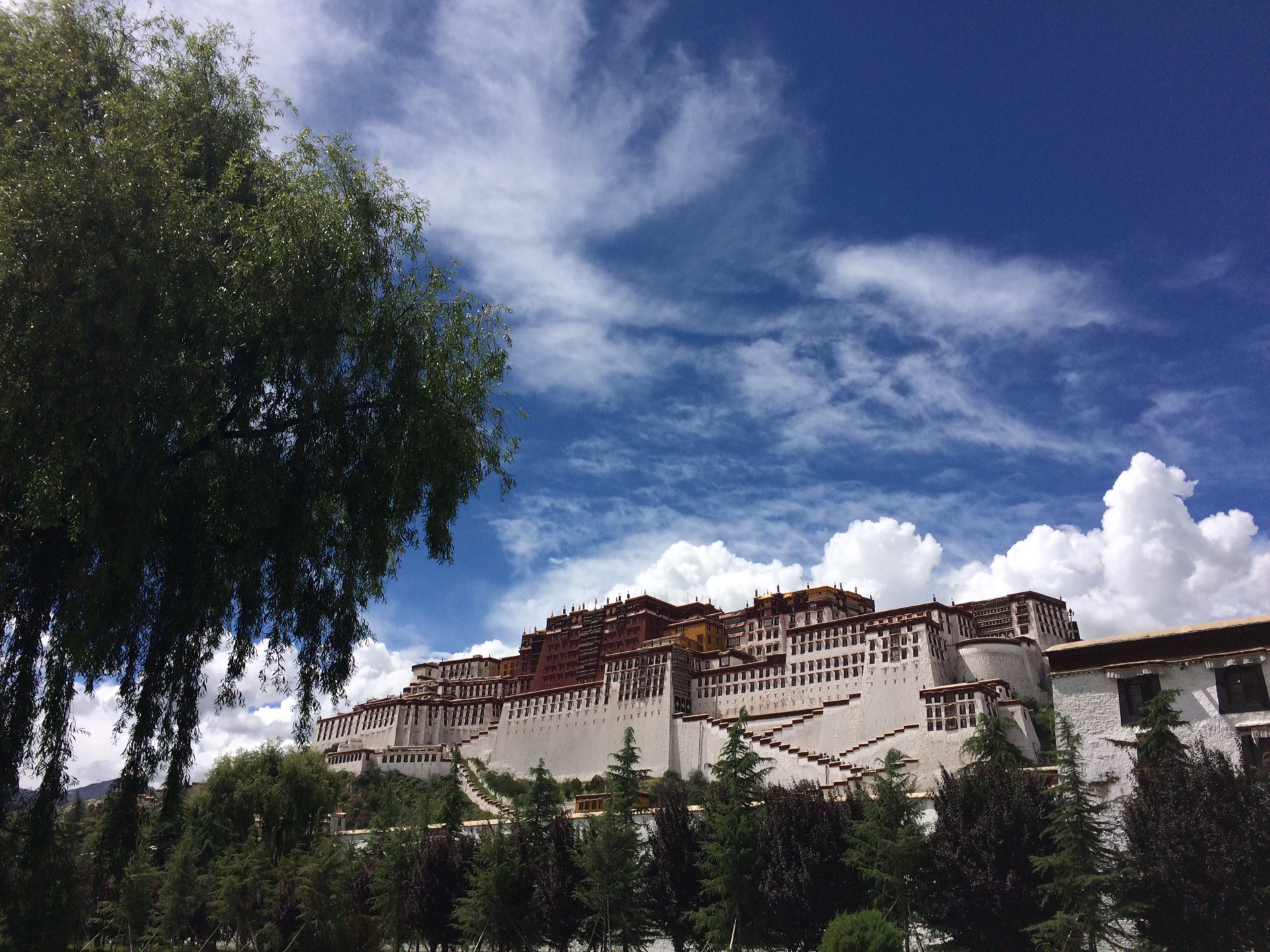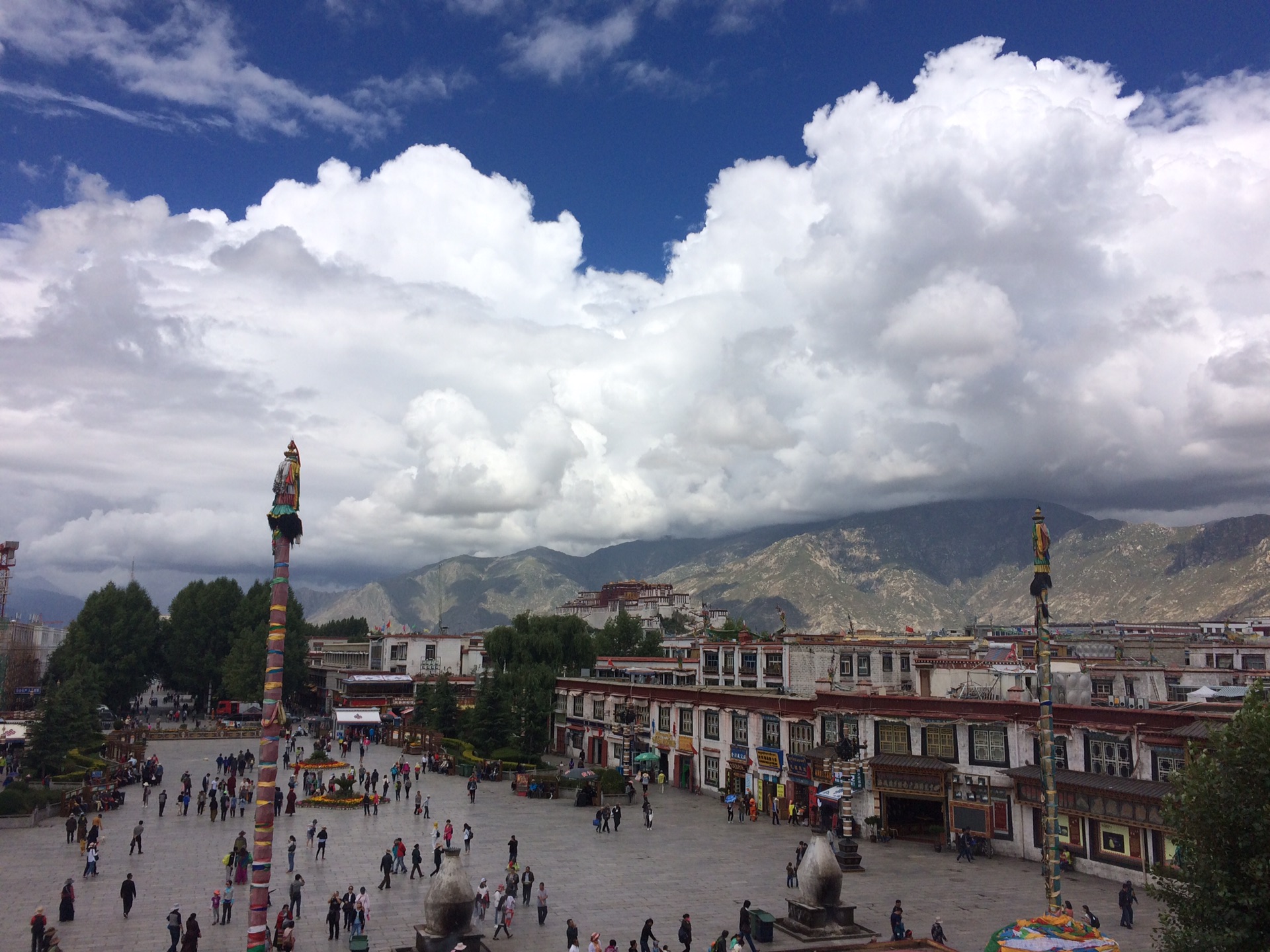 布达拉宫对面的广场两侧,绿树成荫。