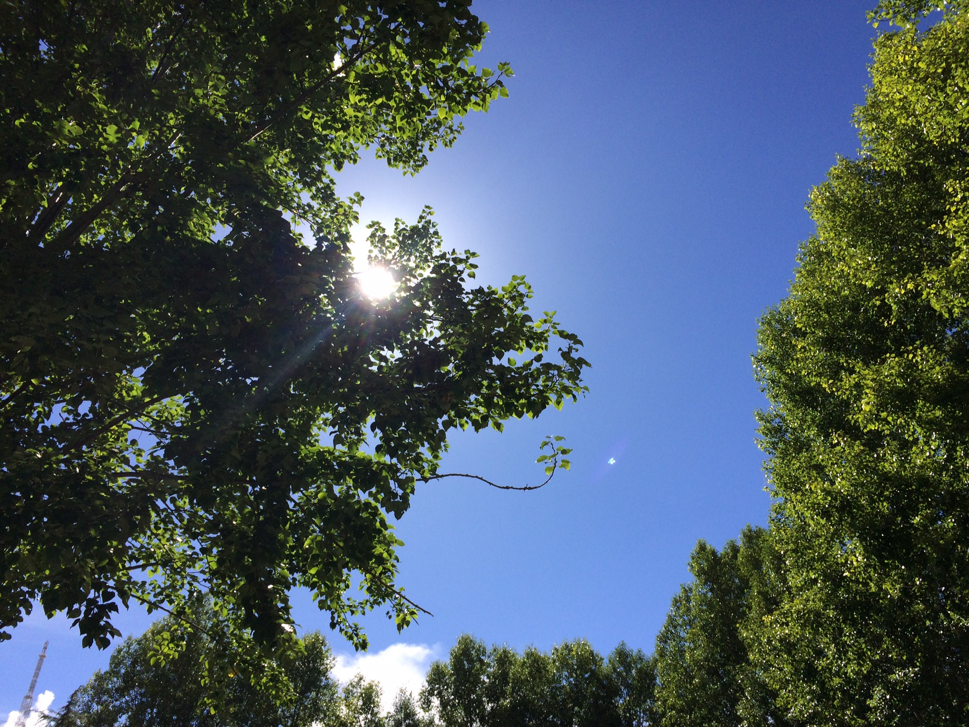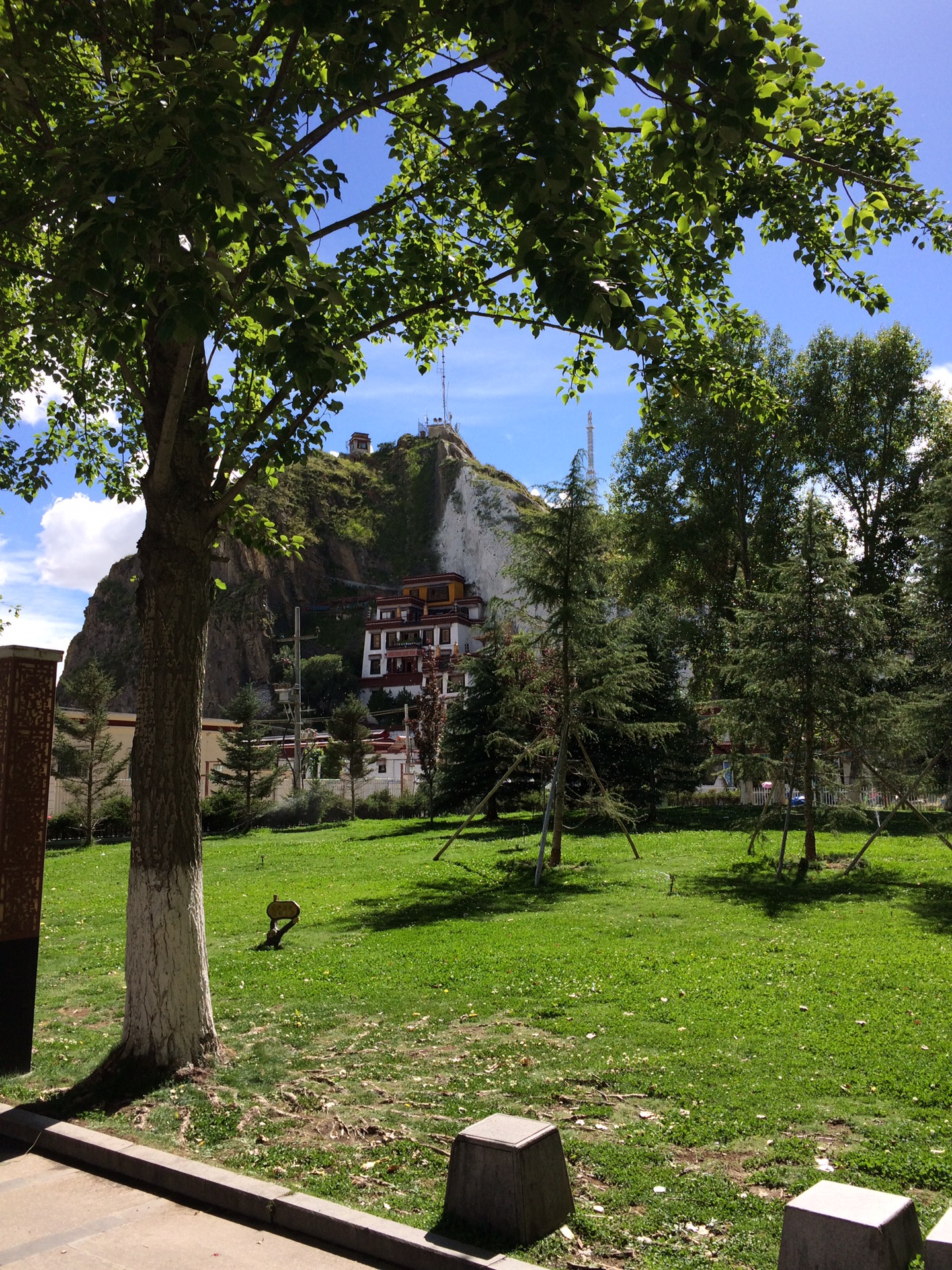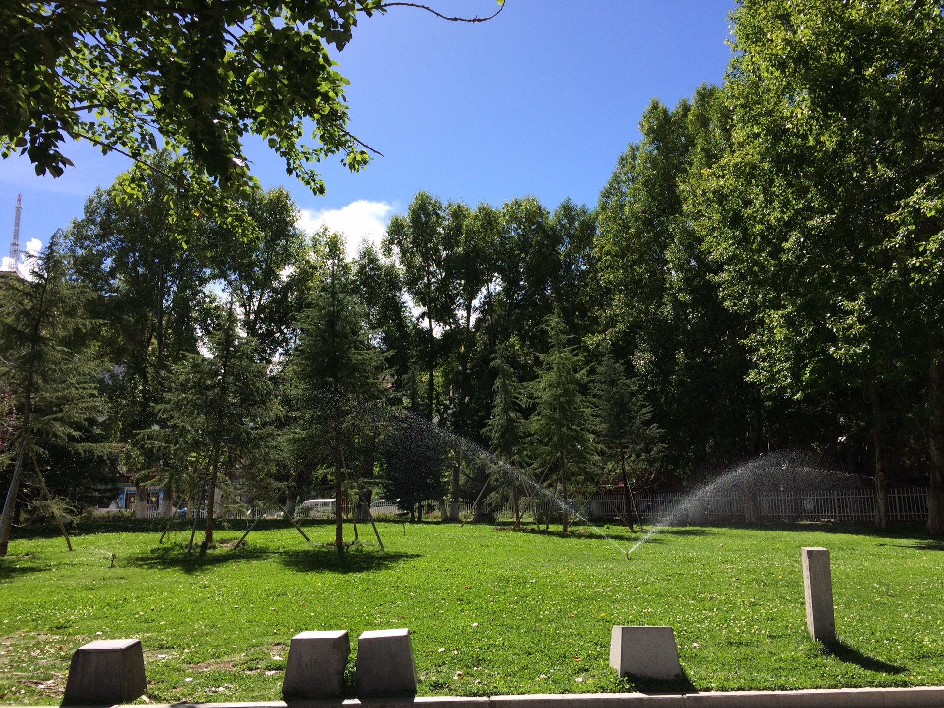 布达拉宫对面的广场两侧,绿树成荫。