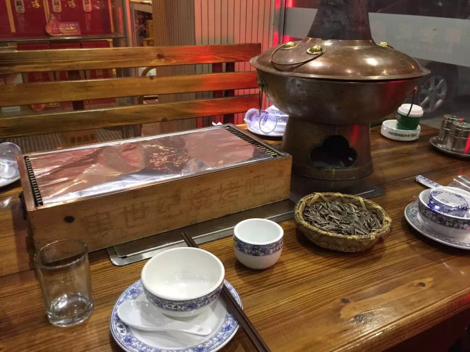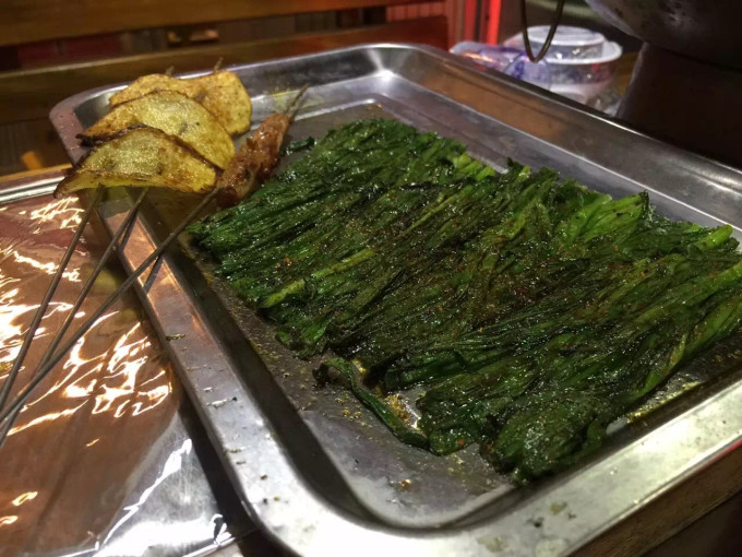 本来晚上到南京是准备吃最爱的宵夜的,然而……关门了,来不及了,飞机干嘛不飞快点。来南京40%的原因就是要吃大爱的鸡鸣汤包……6点多的飞机,9点多到南京,到市区就十点多了,这个时间南京很多餐饮店都关门了。晚上还是是只能吃烤串了。还好南京的烤串味道不错,鸭舌是亮点,下面还有炭火一直保温。一个人坐一大张台,感觉好有气势。