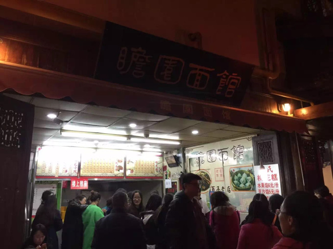 走山走那么累,当然要吃顿好的补一下。今晚本来要去吃大牌档的,但是远在广州的南京朋友大力推荐老门东,于是就果断转场。来到一看,这里就好像巨大版的宽窄巷子,整个风格一如秦淮河风景区,但是主路就没什么饮食店(2015年末),不少店铺还没有商家入驻。细心一找,才在一条小路找到老字号集中处。由于太晚,徐记的鸭子已经卖完,但是有蒋有记已经足够。牛肉锅贴够香、够油、够味道;牛肉汤味够浓;相对牛肉馄饨就一般了,但是配上这里的辣椒油也很不错。吃完再来个詹园面馆的梅花糕,相当满足。