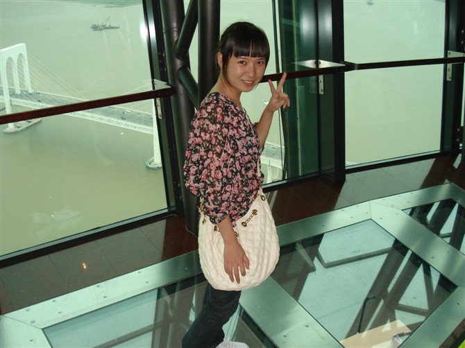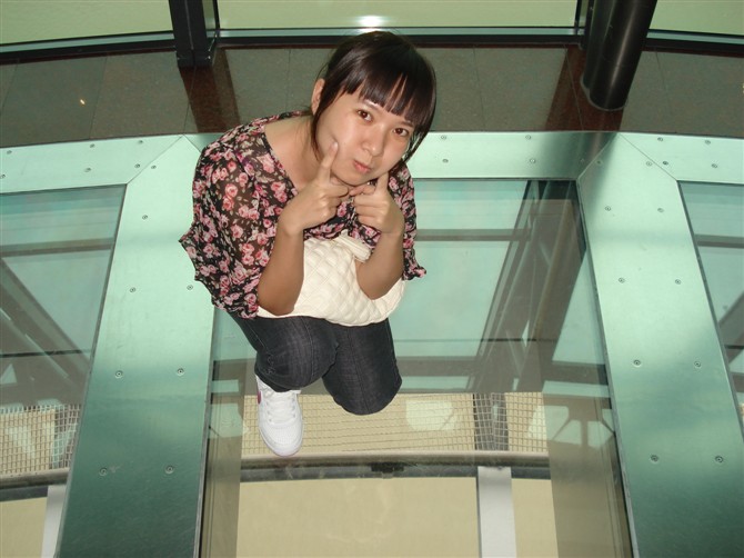 这是主层观光设计的透明走道,一低头,可以看见地面!踩在上面往下看,等同于悬空在200多米的高空,站在上面真的非常需要勇气!我和咱家小孩在这透明走道上纠结了很久......最后,我先踩下去,没敢低头看,脚软!咱家小孩在我的"威逼"下,老半天鼓起勇气站在一旁匆忙地给我拍了一张......妈呀,起来的时候依然不敢往下看!