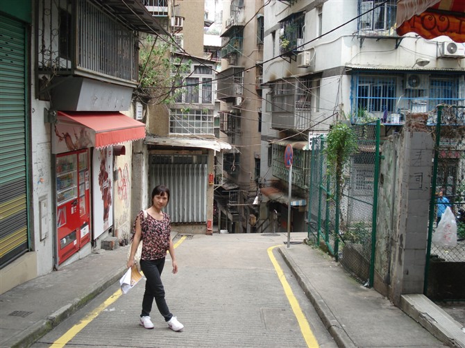 从郑家大屋出来后,往左边沿着街道一直走......澳门 的街道好小,单行线。公车还是可以穿街走巷,明明觉得转不过去了,却几乎贴着墙就转过去了...