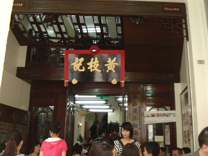 从大炮台下来,肚子已经开始咕噜咕噜地发起抗议了!澳门 的美食何其多,吃过蛋挞之后,我们的午饭就在黄枝记解决,尝一尝富有特色的竹升打面。黄枝记位于议事亭前地17号,是一家拥有50多年历史的老店,老板竹升打面的技术曾在葡国总统面前表演过。所谓的竹升打面呢,就是打面的师傅坐在粗粗的竹杖上,反反复复地打压2小时,打出面团的韧度,所以面条细,配上汤汁十分入味。