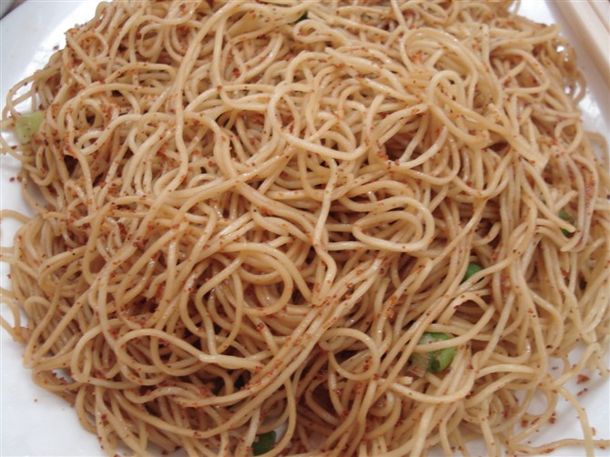 这个是传统的吃法:煮成干面,撒上虾卵和辛香料,配上一碗又浓又咸的虾汤。虾汤可单喝,也可拌面~