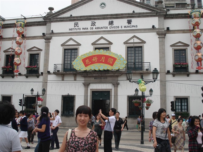 填饱了肚子,走出黄枝记,沿着街铺慢慢悠悠地闲逛。走着走着就来到了民政总署大楼。这是澳门 最具代表性的建筑。内部十分宁静庄重,给人与世隔绝的感觉。内墙贴有葡萄牙 的蓝白砖瓦,花园内繁华丛生。市政厅坐落在澳门 繁华的心脏地带,极为雄伟,现为澳门 特区政府所在地。周边建筑有邮政局、旅游局和仁慈堂等。