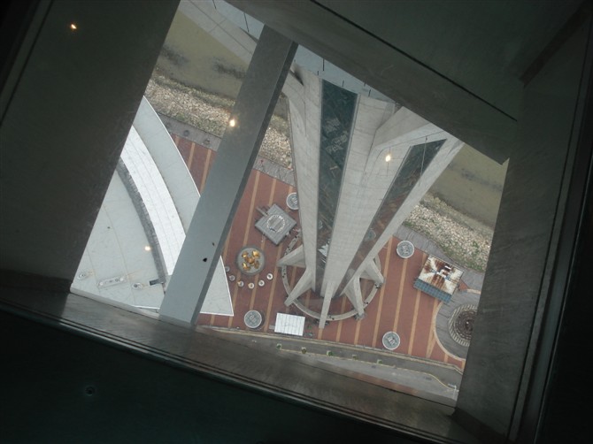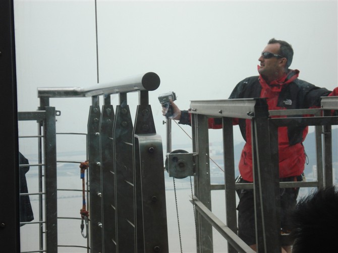 在网上预定了4号的票,拿着证件就能快速地登塔了。乘升降机至观光主层,据说只要45秒。在升降机里,真能感觉到耳鸣。