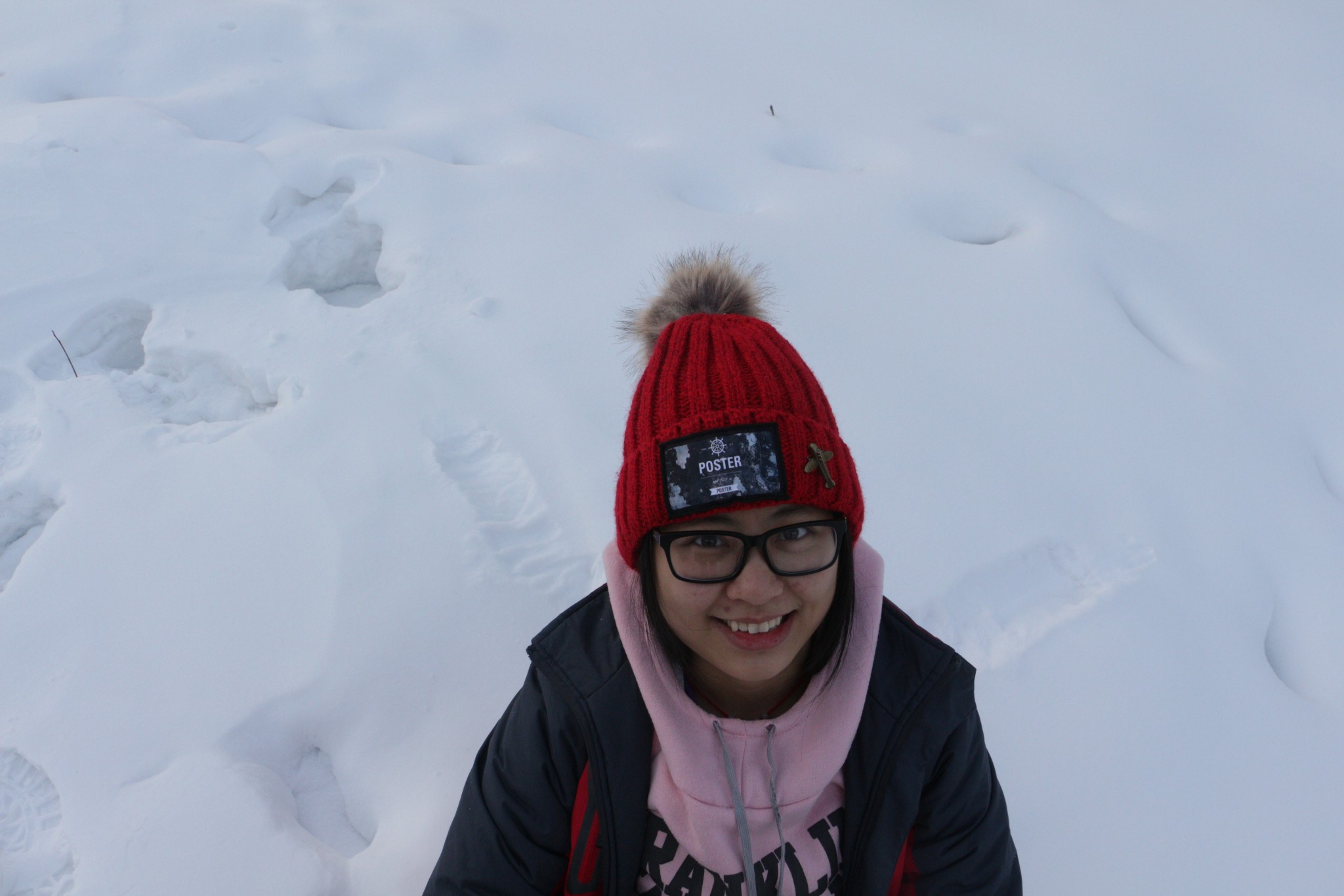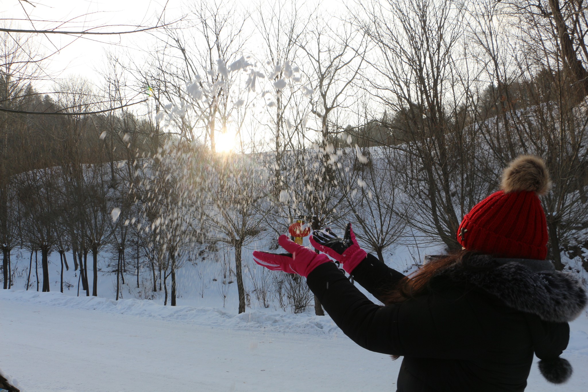 我们第一次看那么厚的雪,一下车就出去洒脱