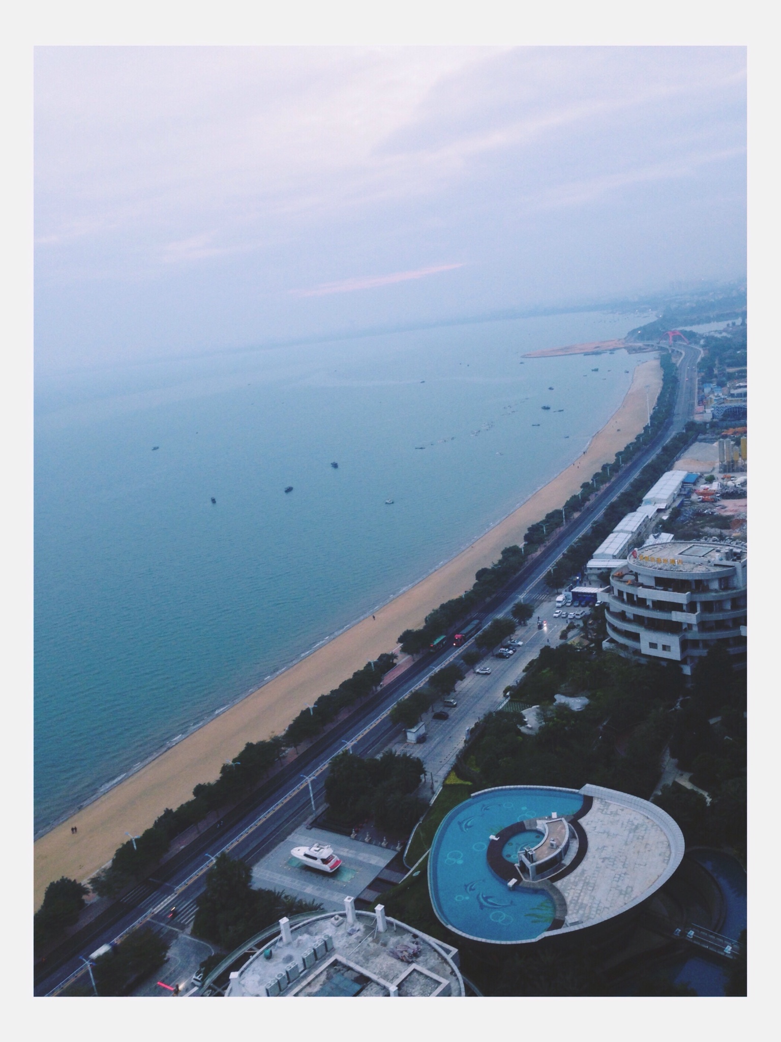 到北海已经是晚上11点了,正好是年末,作为财务狗,下班之前还在调整第二年的预算费用,眼睛都快看瞎了。几个小时后看到夜幕下的北海市,沿海公路上星星点点的车辆和霓虹,不觉心旷神怡!海的对面一望无垠,尽管是无边的黑暗,但是能感觉出它的宽广,对于在雾霾天能见度只有几米的我来说,已经很久没有看见波浪壮阔的画面和清晰可见的天空了。