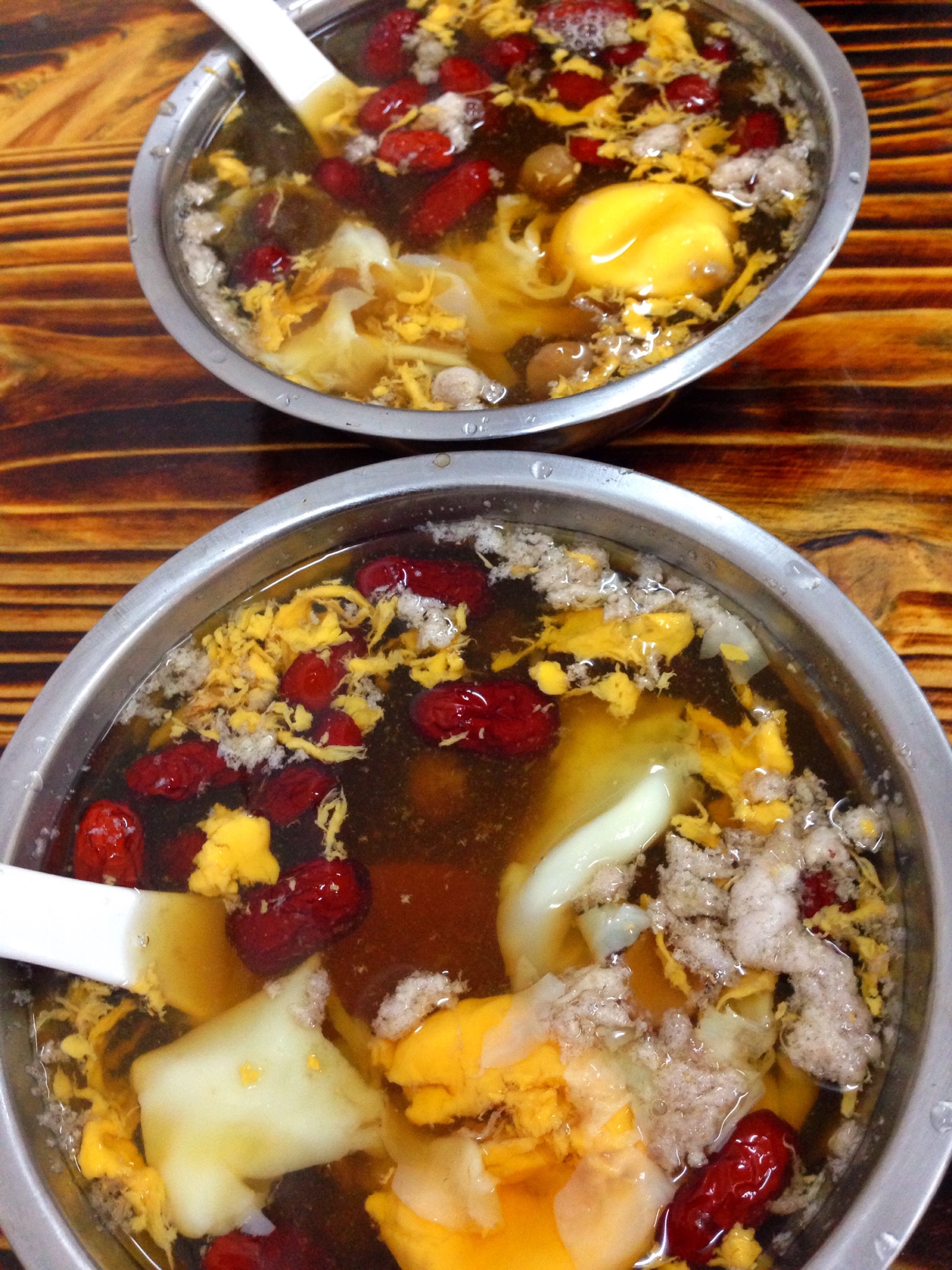 红枣,桂圆,荷包蛋,姜片,红糖,很好喝。