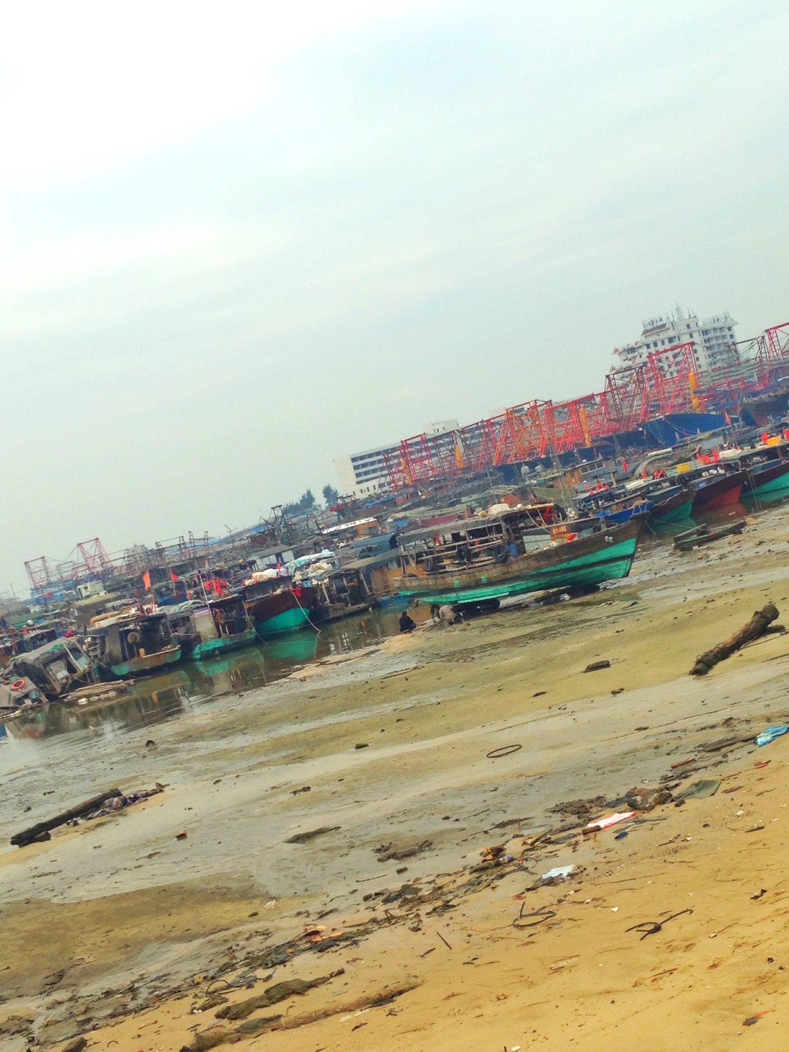 离开船还有几十分钟,我们在码头附近逛了逛,稍显破旧,岸边停靠了很多的渔船还有游轮。