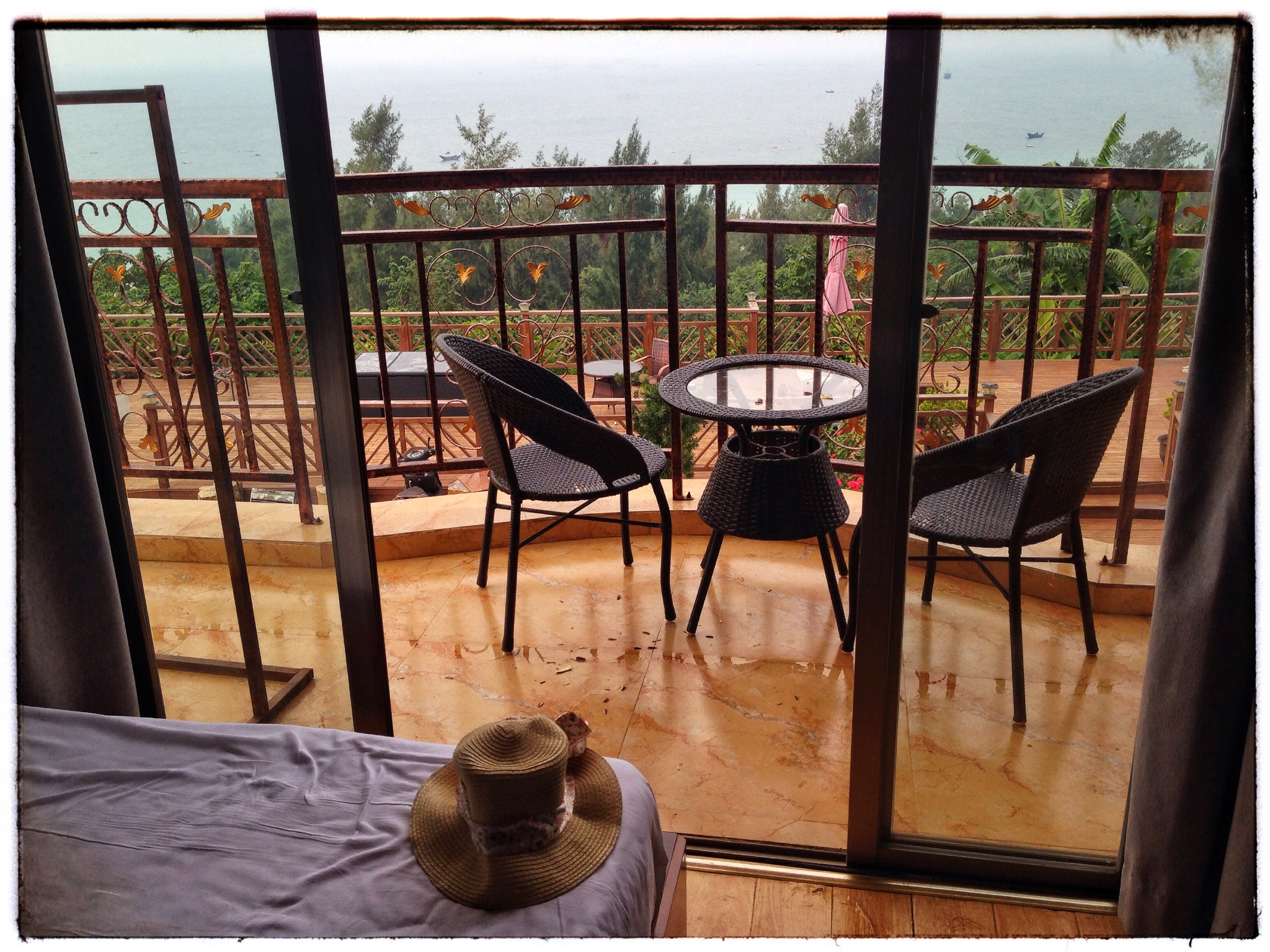 傍晚回酒店露台看日落;入住涠洲岛拉夫海景精品度假酒店;