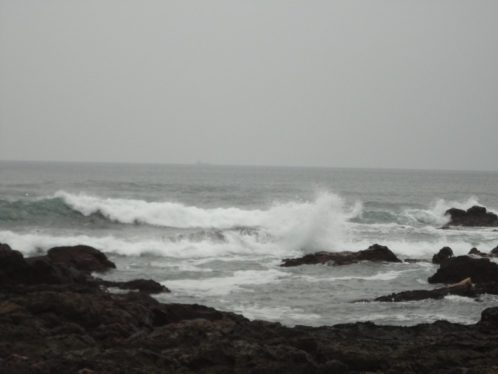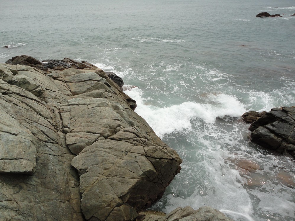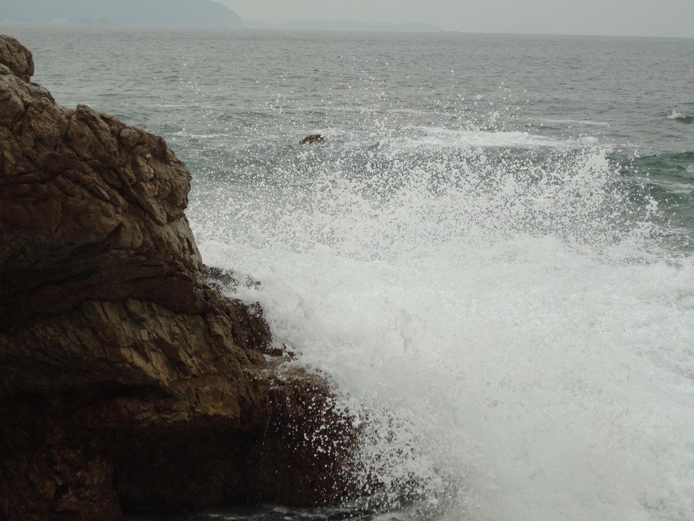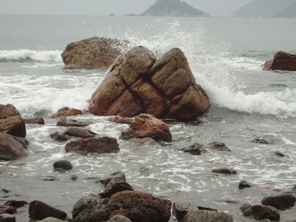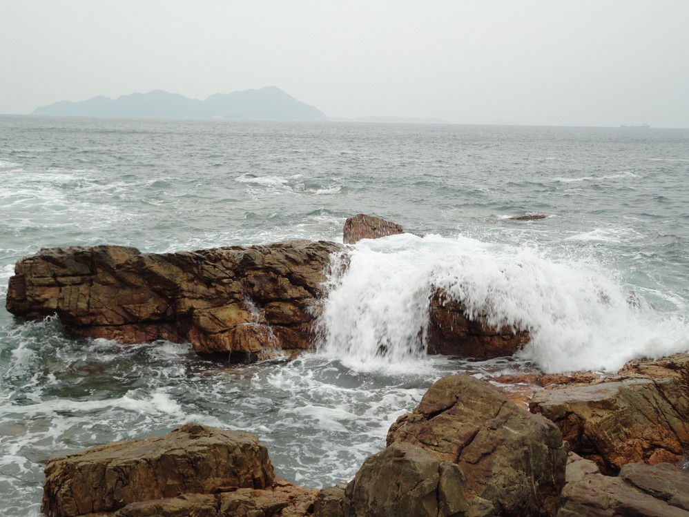 這個巨石,即使被鞭打出數條鞭痕,依然挺立著接受海浪的衝擊