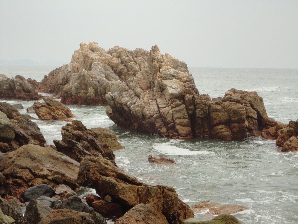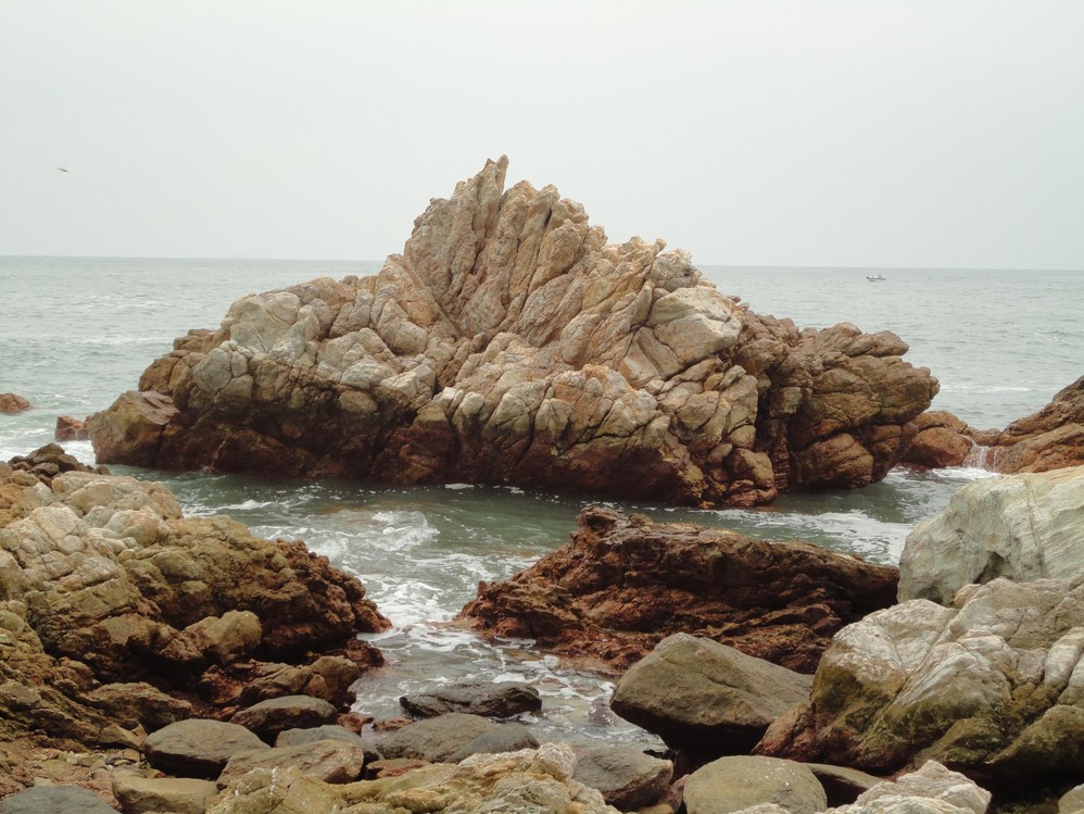 西沖海岸,奇岩怪石林立,這巨石下面竟被穿個洞