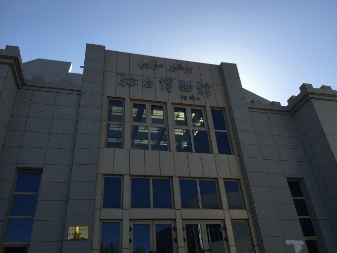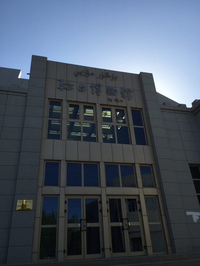 先去参观轮台县博物馆,很难找,隐藏在居民小区里面,没有游客,只有一个身兼数职的汉族姑娘,我们包场了