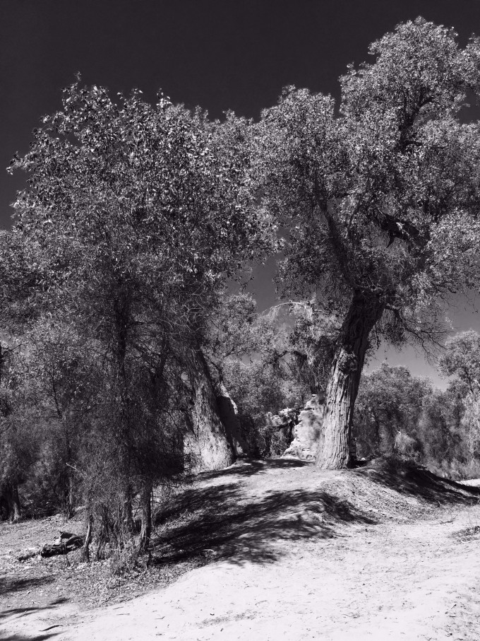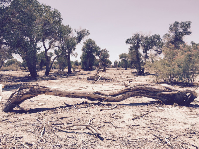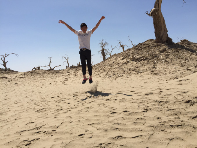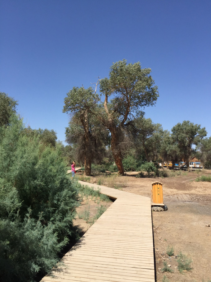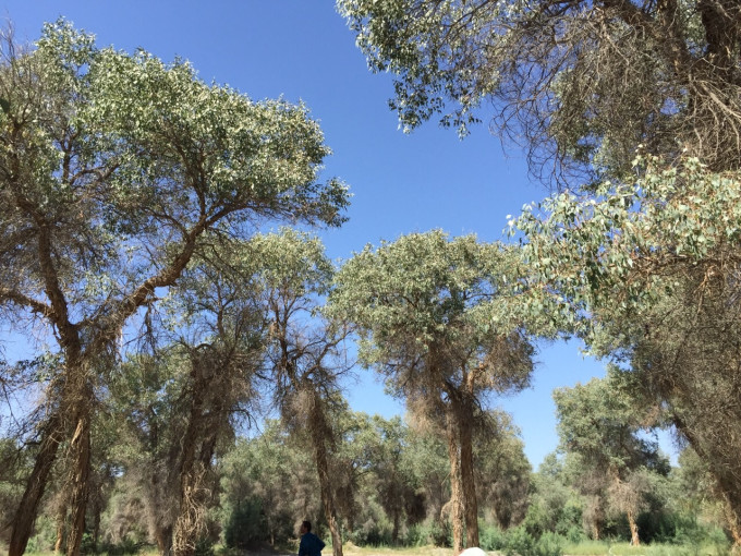 ,夏天不是参观胡杨林的季节,公园里几乎看不到别的游客,我们一家又一次包园了