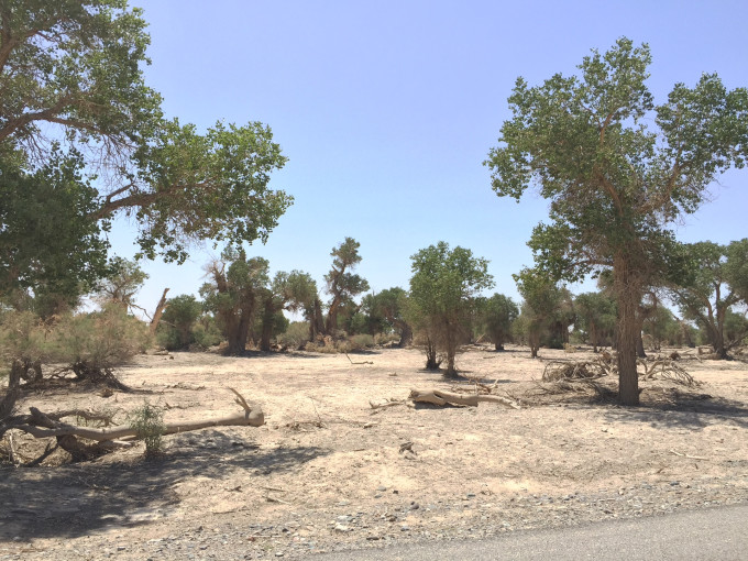 胡杨林是塔里木河流域典型的荒漠森林草甸植被类型,从上游河谷到下游河床均有分布。虽然胡杨林结构相对简单,但具有很强的地带性生态烙印。全世界的胡杨绝大部分生长在中国,而中国百分之九十以上的胡杨林又生长在新疆塔里木河流域。胡杨,维吾尔语叫“托克拉克”,意为“最美丽的树”。由于它顽强的生命力,以及惊人的抗干旱、御风沙、耐盐碱的能力,人们又叫它“沙漠英雄树”。胡杨,还有红柳、梭梭、沙枣等沙漠植物,它们的一生就是一部启示录。(以上知识点来自度娘)