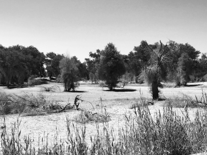 参观完博物馆就去胡杨林公园,虽说现在不是参观胡杨林的最佳时间,但是能亲眼见到这传说中的“活三千年不死,死三千年不倒,倒三千不朽”的神树还是很期待的。